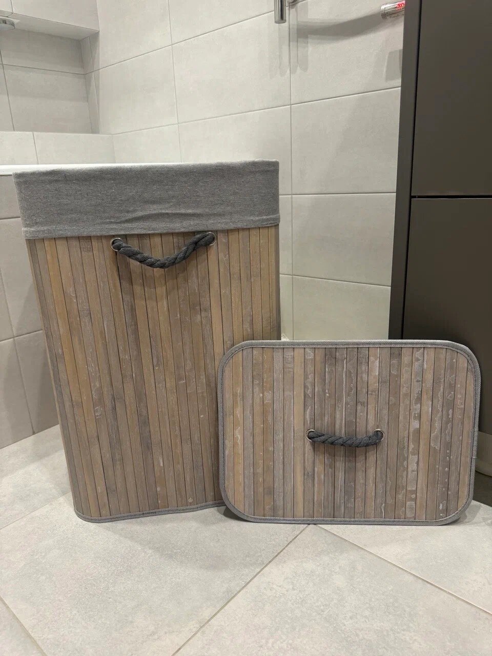 Корзина для белья CozyNook 68L, бамбук/текстиль/хлопок, бежевая интересное: