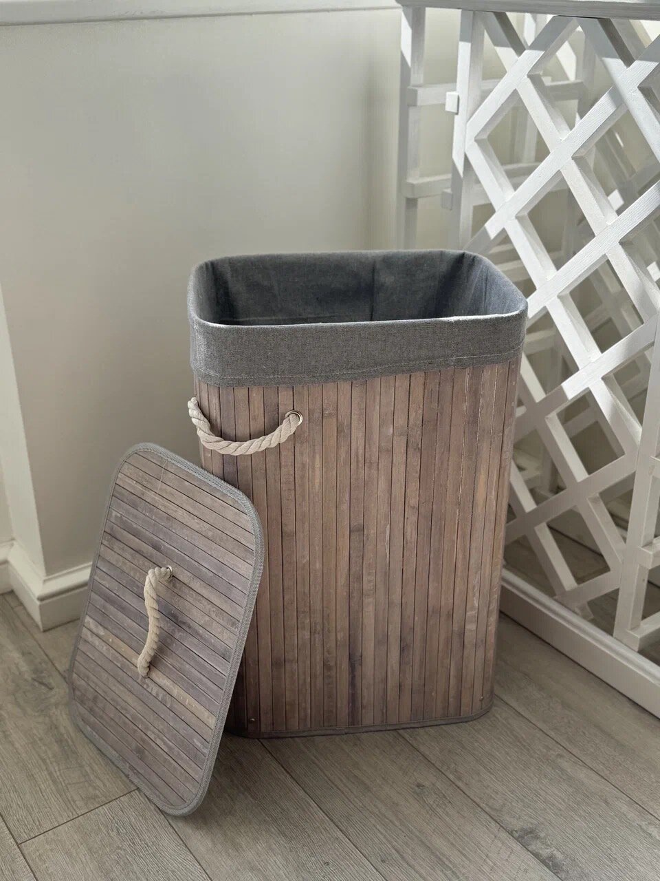 Корзина для белья CozyNook, с крышкой, бамбук, 55 литров, угловая