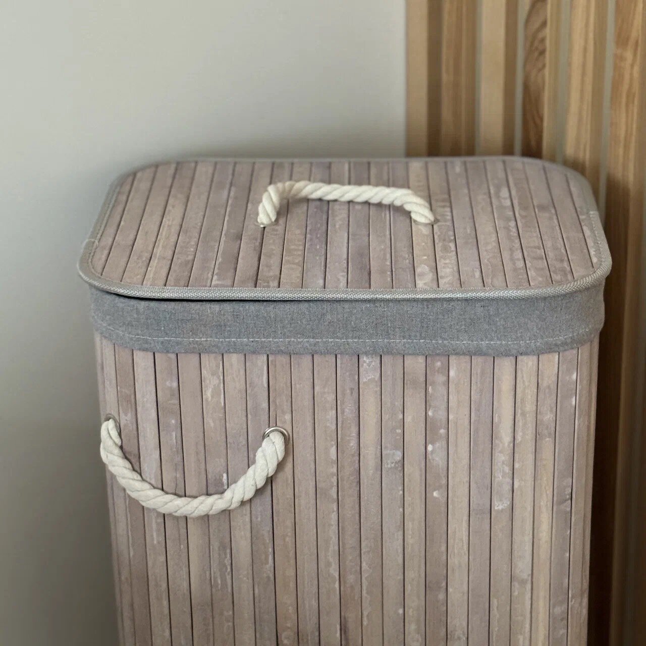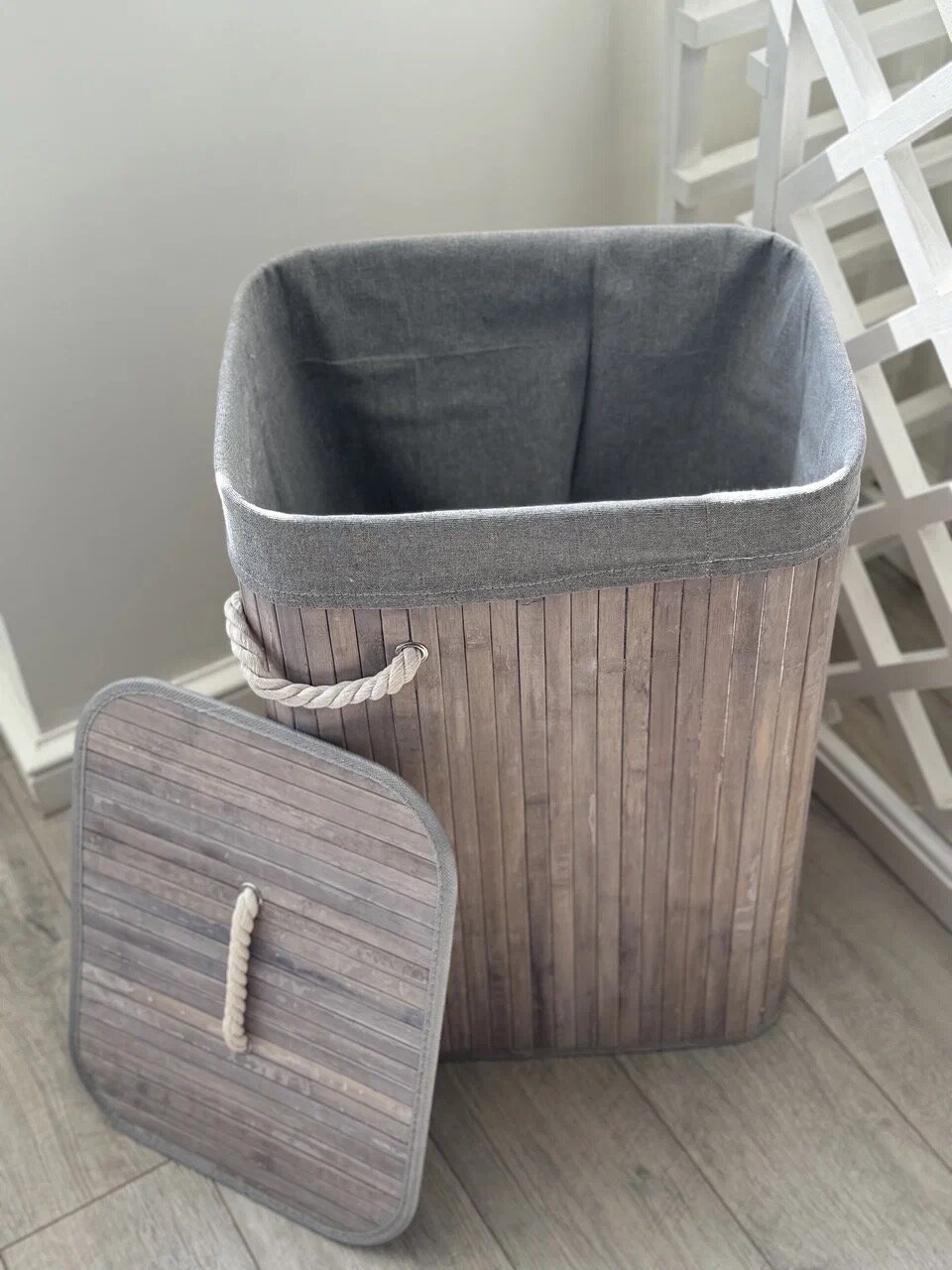 Корзина для белья CozyNook, с крышкой, бамбук/текстиль/хлопок, прямоугольная, 68л, серо-коричневая