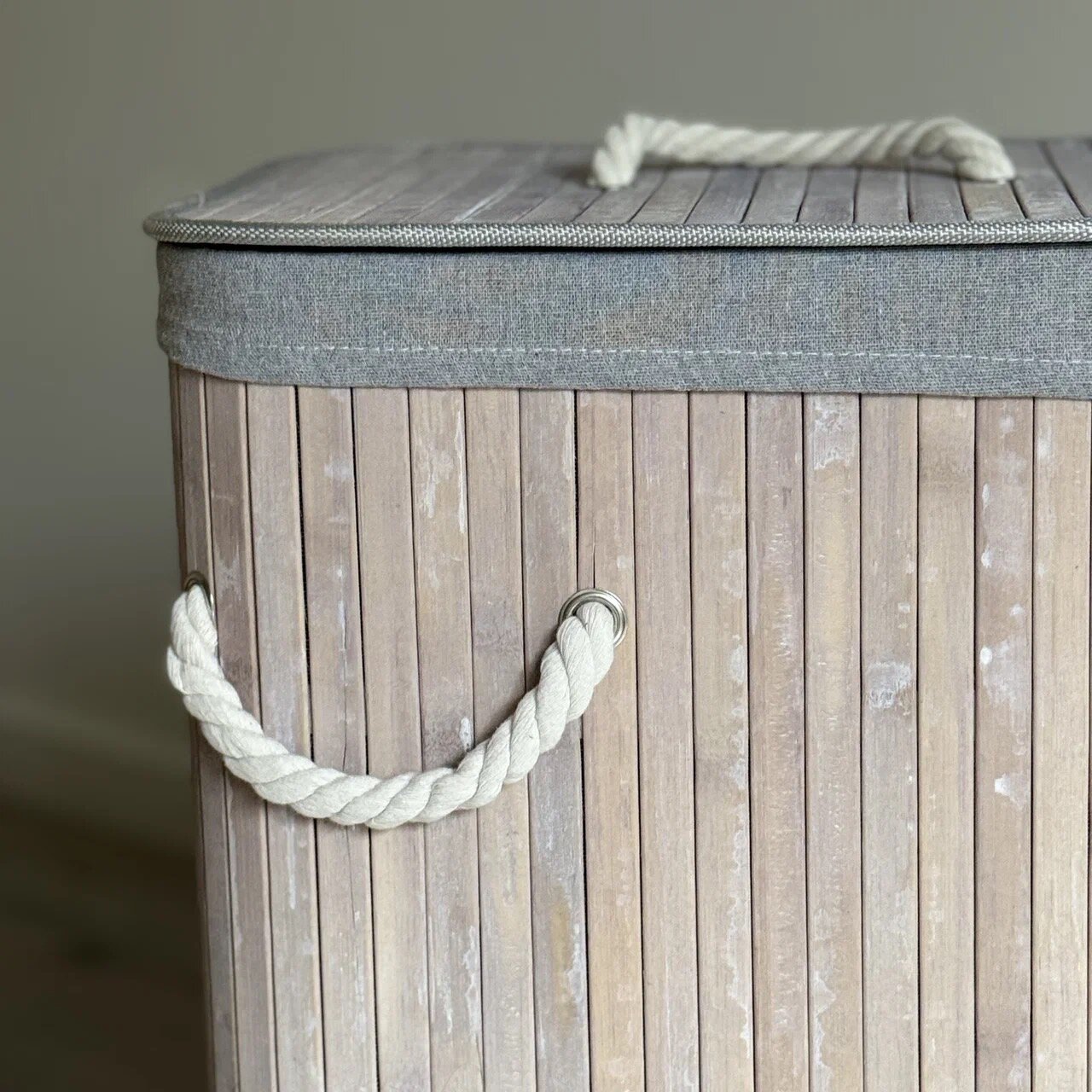 Корзина для белья CozyNook, с крышкой и ручками, бамбук/текстиль/хлопок