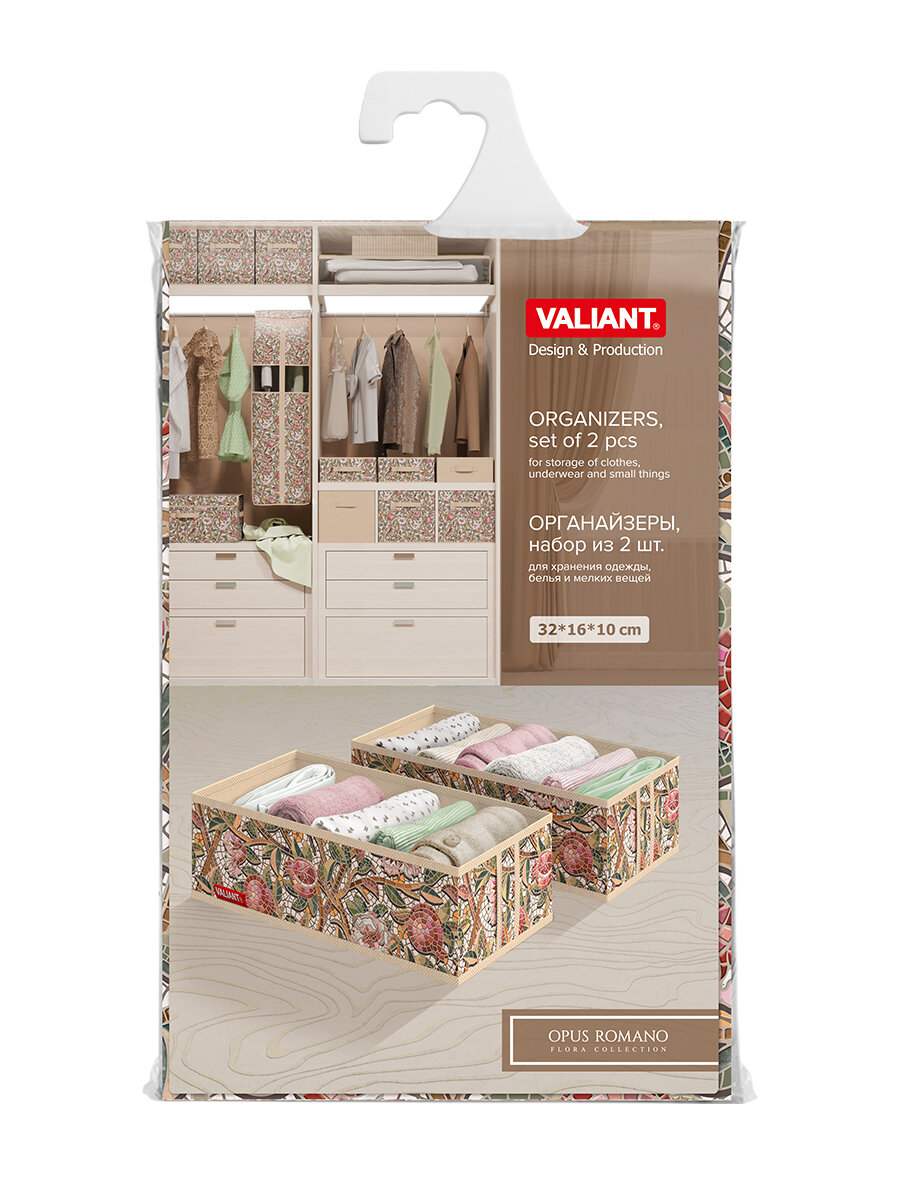 Органайзер для хранения вещей, белья, набор 2 шт. 32*16*10 см, OPUS ROMANO FLORA