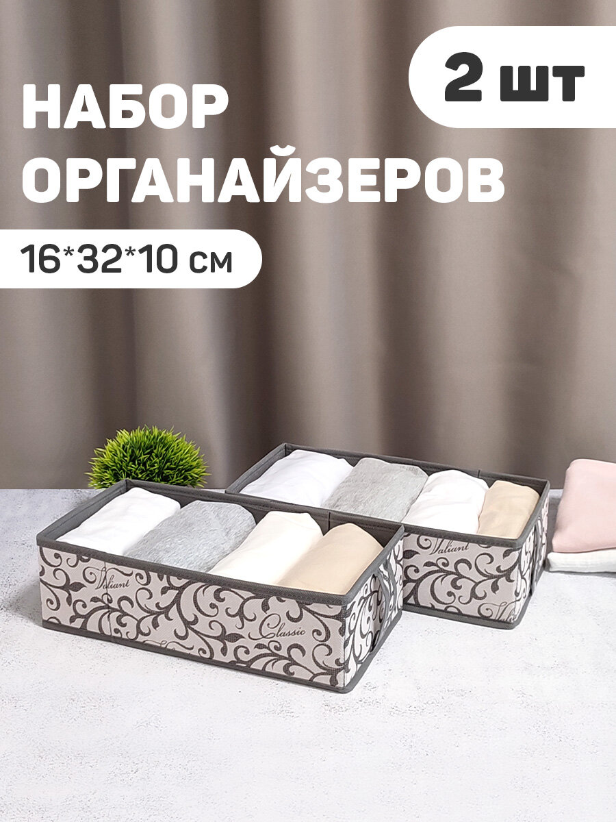 Купить Органайзер для хранения вещей, белья, набор 2 шт. 32*16*10 см, CLASSIC GREY