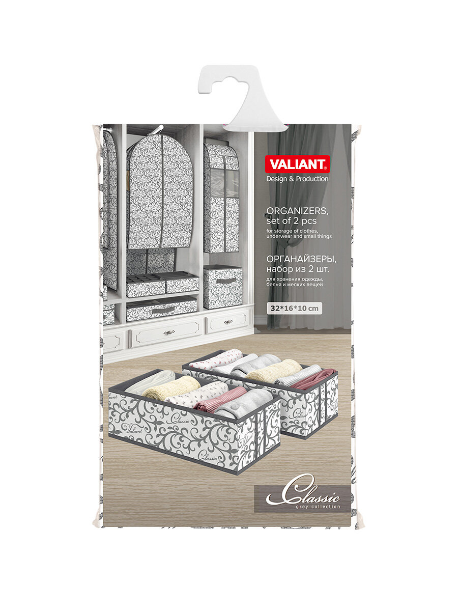 СохранитьОрганайзер для хранения вещей, белья, набор 2 шт. 32*16*10 см, CLASSIC GREY интересное: