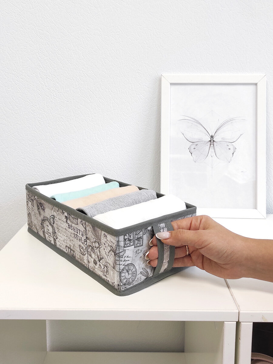 СохранитьОрганайзер для хранения вещей, белья, набор 2 шт. 32*16*10 см, VINTAGE GREY интересное: