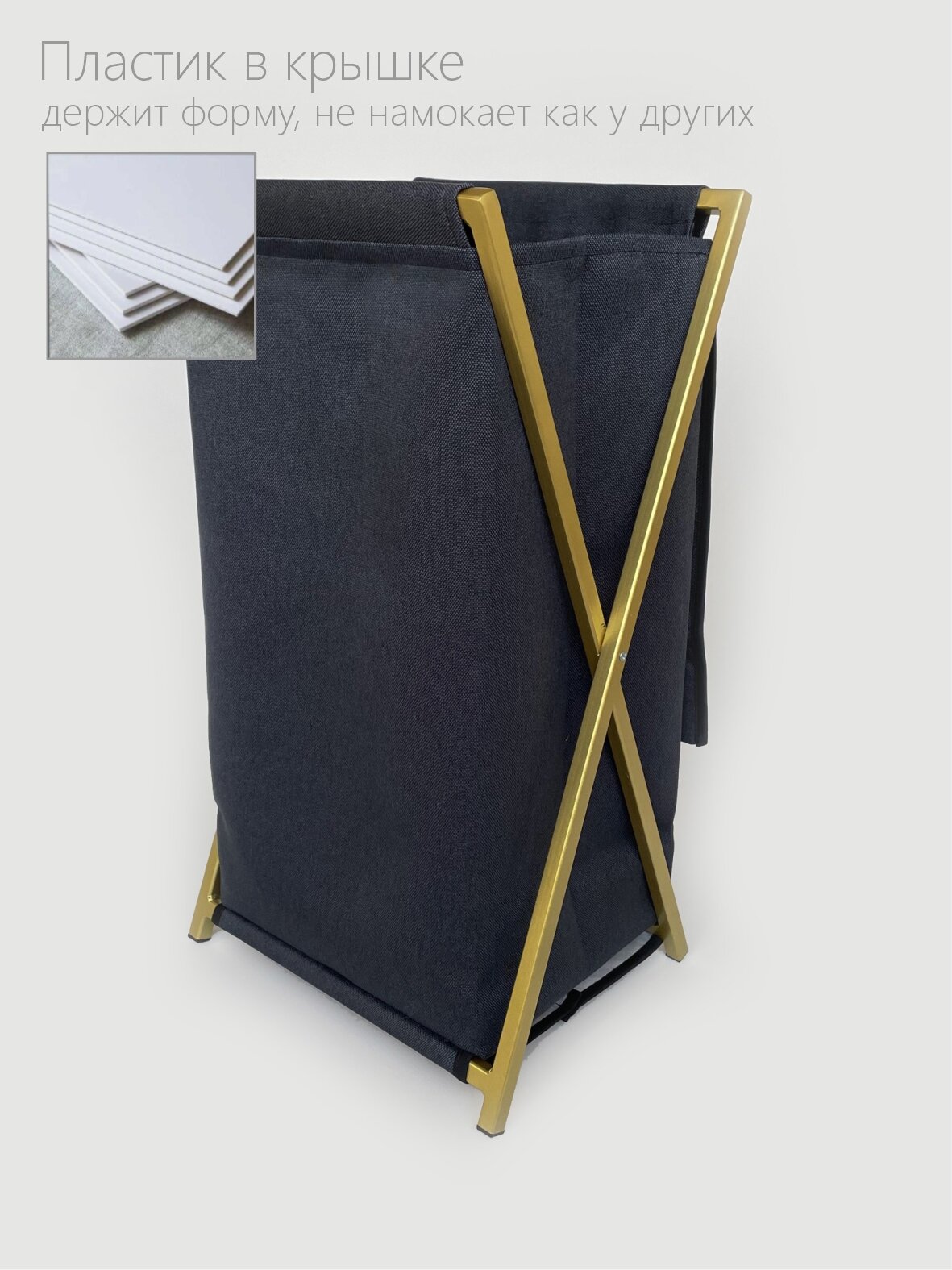 Корзина для белья Molinardi Creativo "Kagliari", складная, с крышкой, серая на золотом
