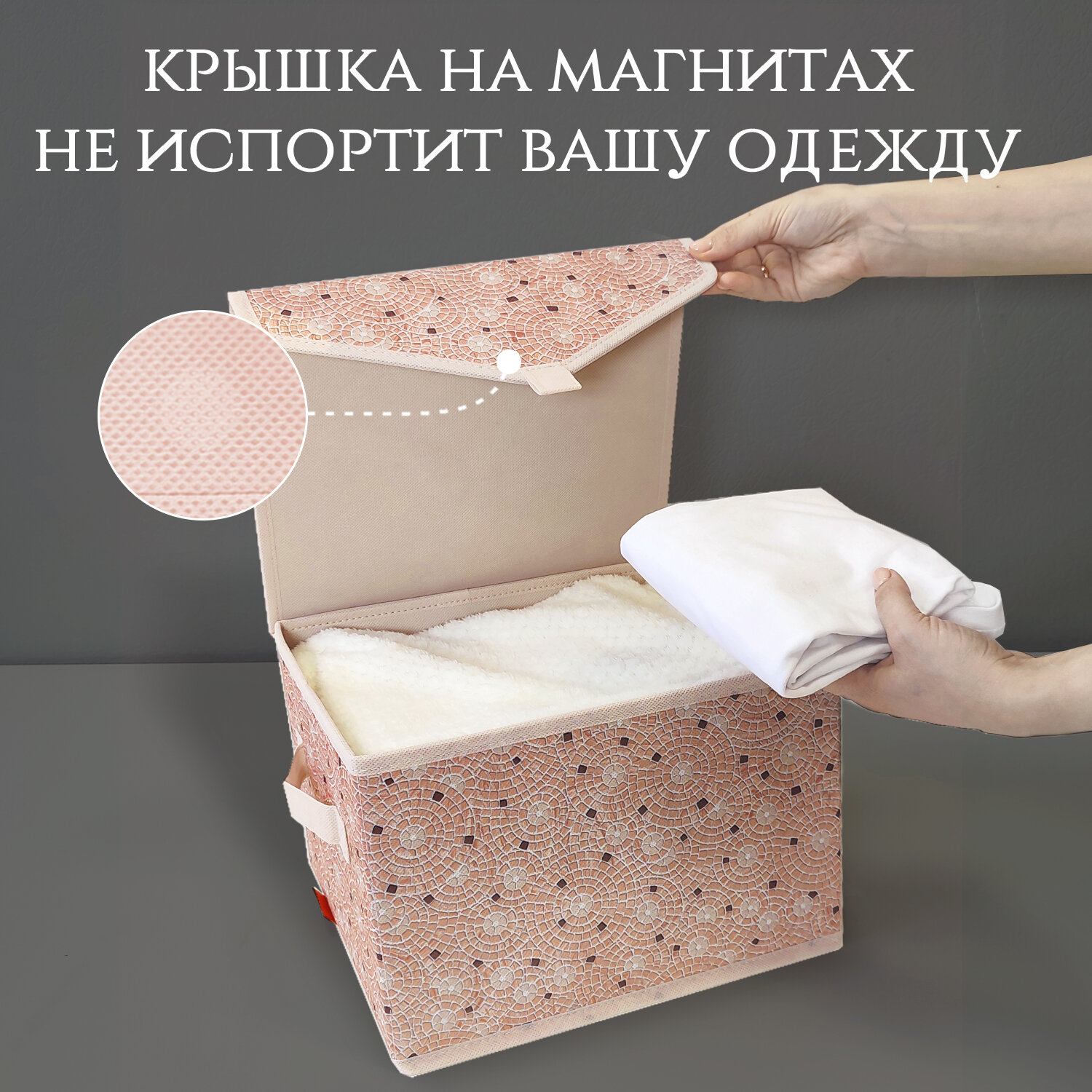 Коробка для хранения вещей с крышкой, короб для хранения стеллажный, корзина, ящик, 28*30*16 см, VALIANT BOTANIC