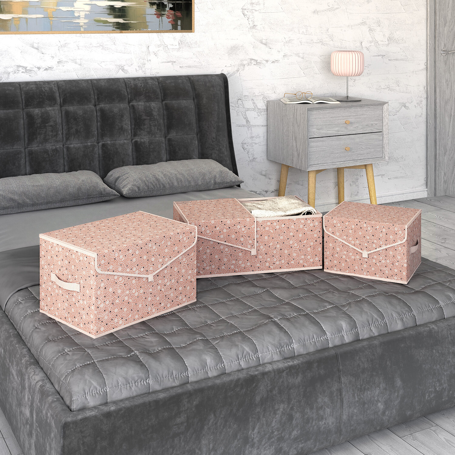 Коробка для хранения вещей с крышкой, короб для хранения стеллажный, корзина, ящик, 30*25*20 см, MONET NIGHT
