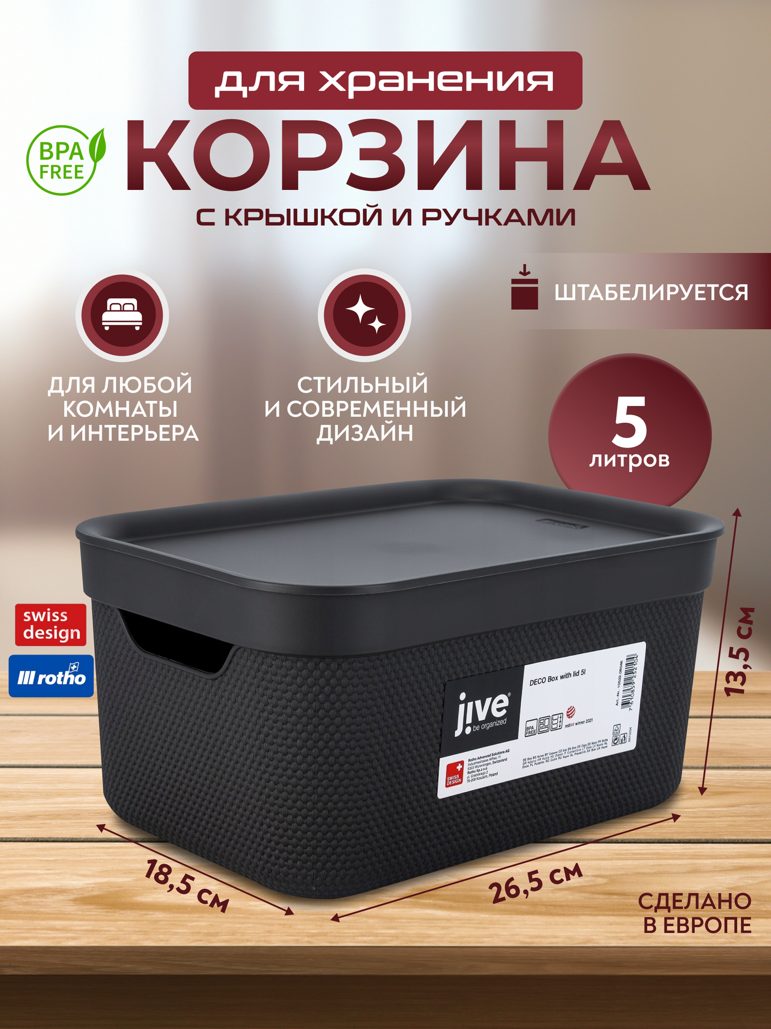 ROTHO Корзина с крышкой Jive Deco для хранения вещей, 5 л, черный 1052208046