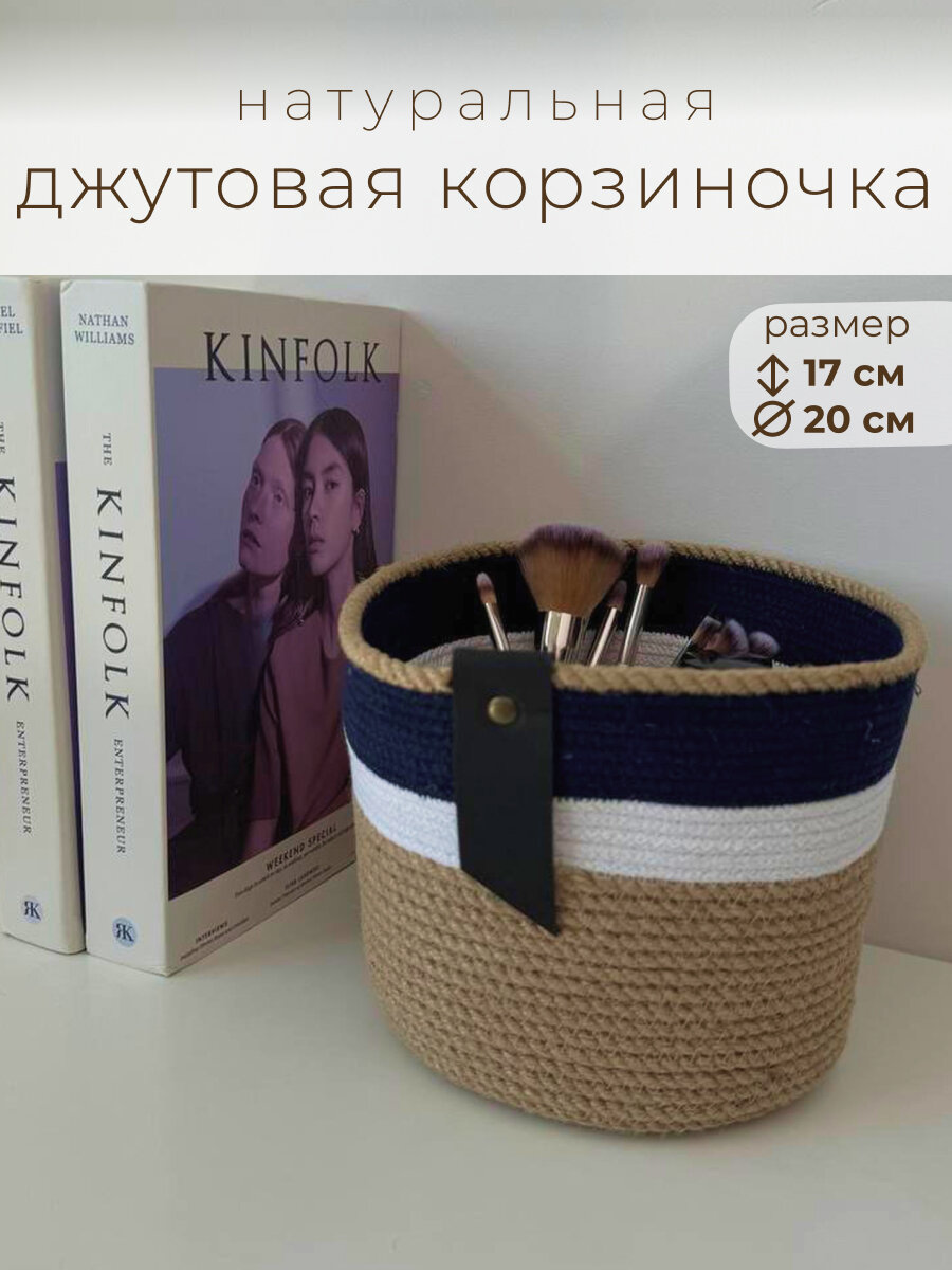Купить Корзинка джутовая интерьерная для хранения органайзер без крышки KLMK 18х20 см