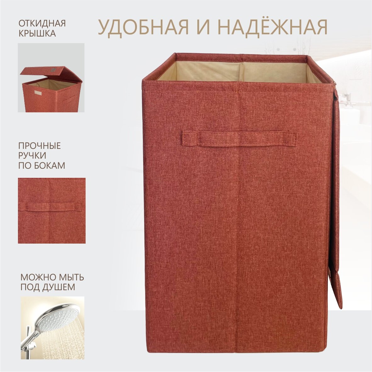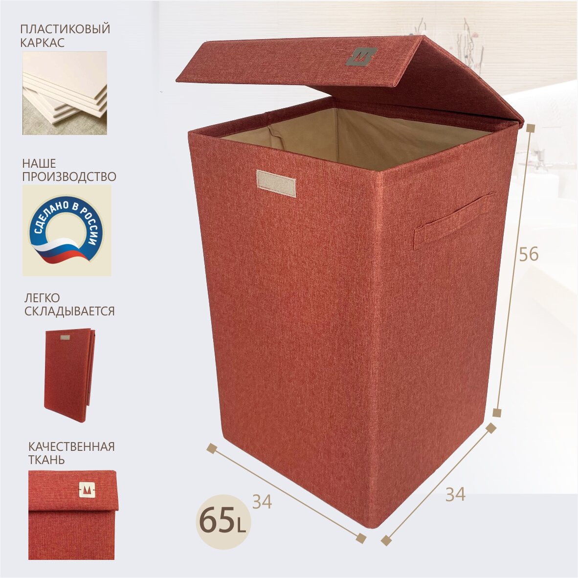 Корзина для белья Molinardi Creativo "Маттео", с крышкой, складная, кораллово-красная интересное: