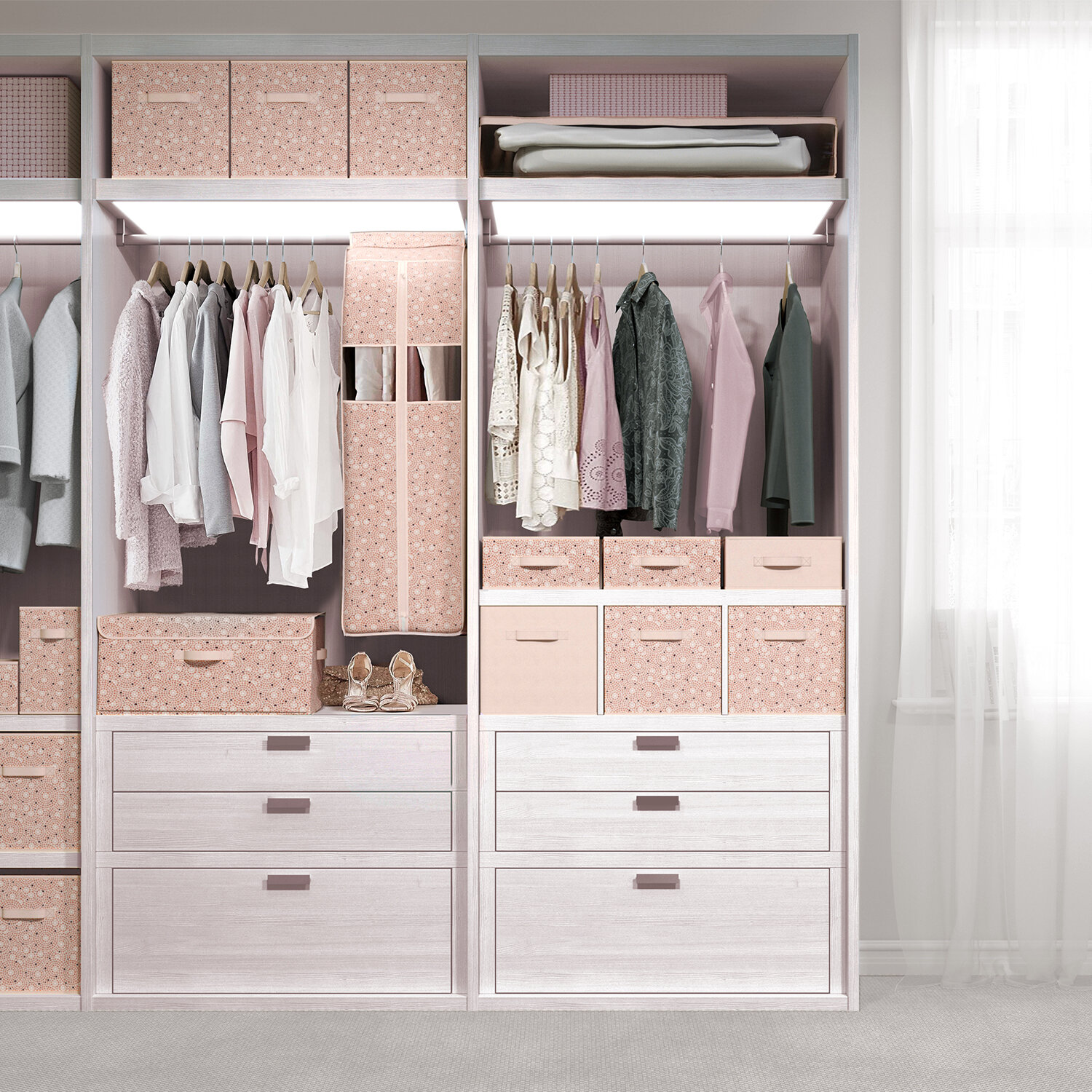 Коробки для хранения вещей, органайзер для хранения, ящик, корзина, набор 2 шт, 31*31*31 см, розовый, путешастики
