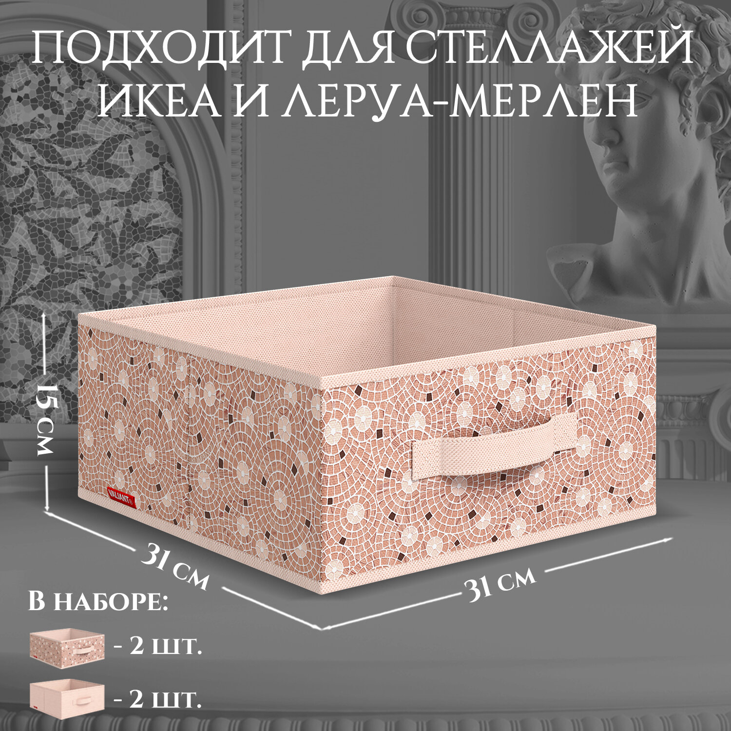 Коробки для хранения вещей, короб для хранения стеллажный, корзина, органайзер, набор 4 шт, 31*31*15 см, MONET MORNING