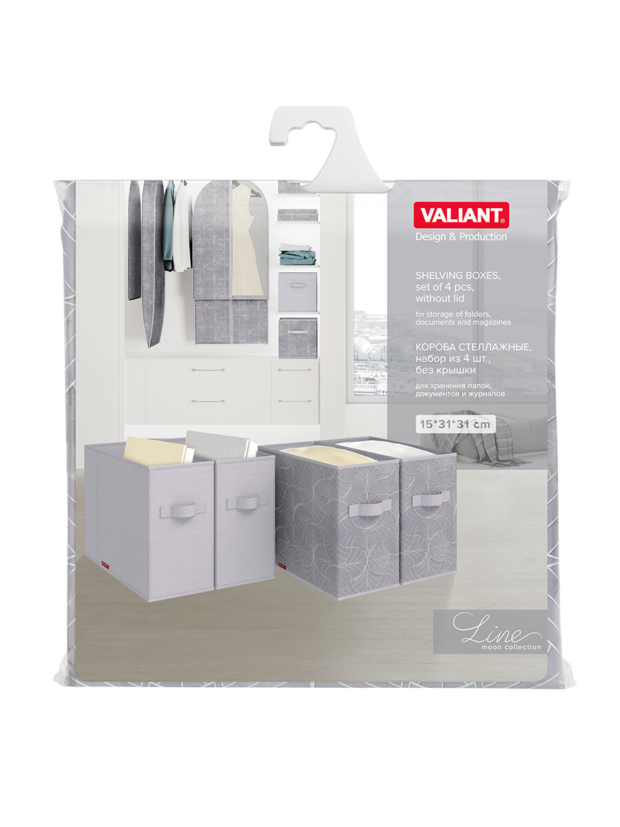 Коробки для хранения вещей, короб для хранения стеллажный, корзина, органайзер, набор 4 шт, 31*31*15 см, LINE MOON