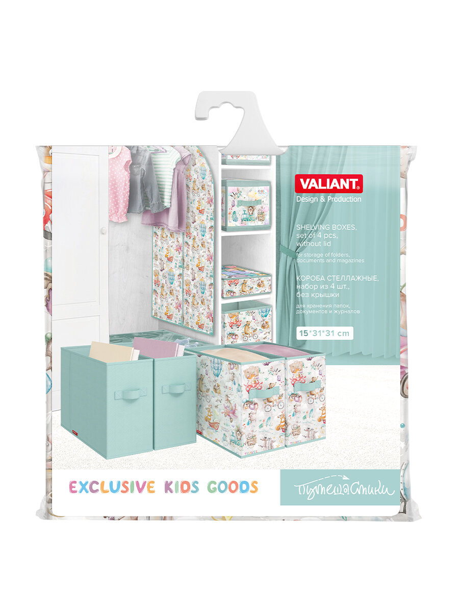 Коробки для хранения вещей, короб для хранения стеллажный, корзина, органайзер, набор 4шт, 31*31*15 см, ПУТЕШАСТИКИ MINT