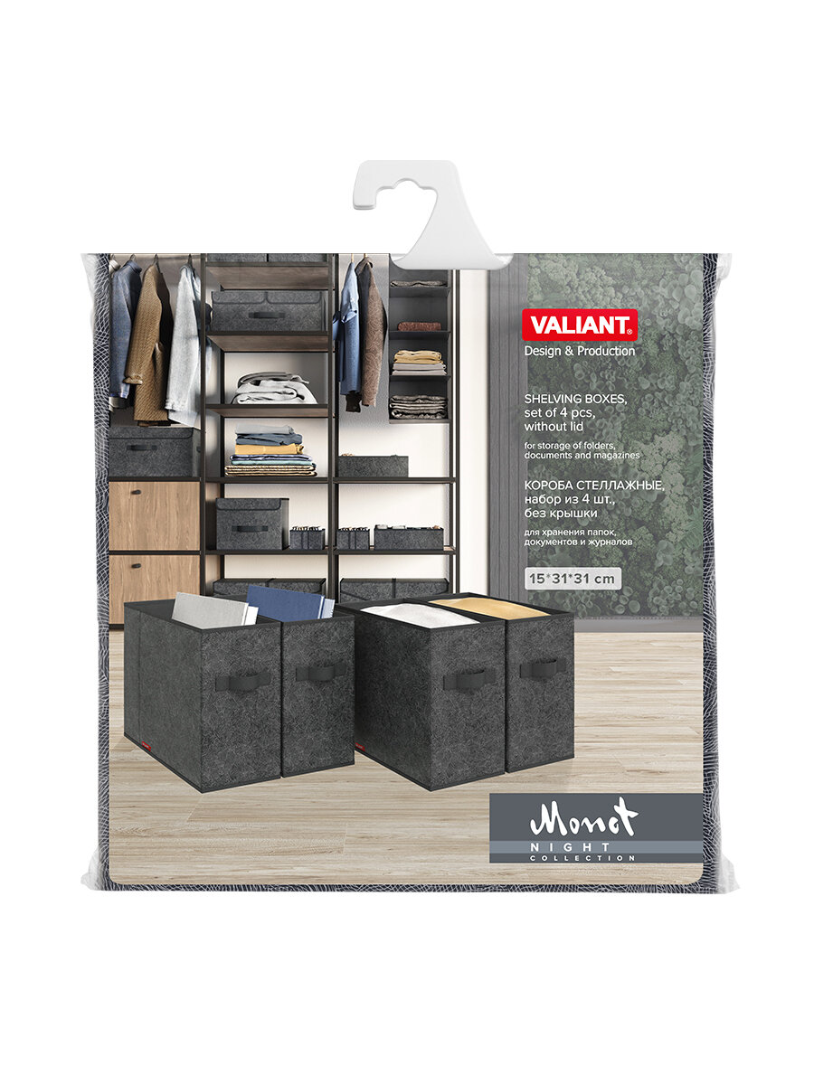 Коробки для хранения вещей, короб для хранения стеллажный, корзина, органайзер, набор 4 шт, 31*31*15 см, MONET NIGHT