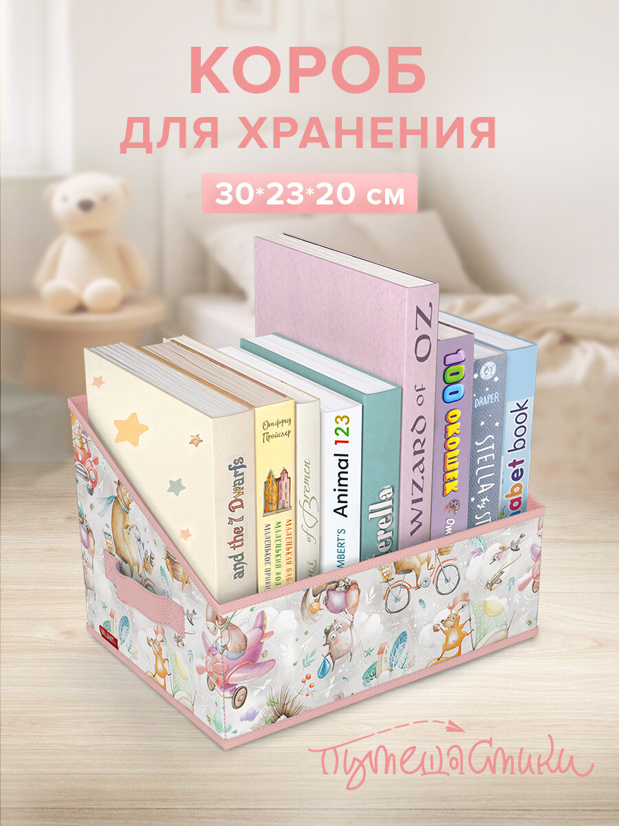 Коробка для хранения вещей, короб для хранения стеллажный, корзина, ящик, подставка для книг, 30*23*20 см, розов, путешастики интересное: