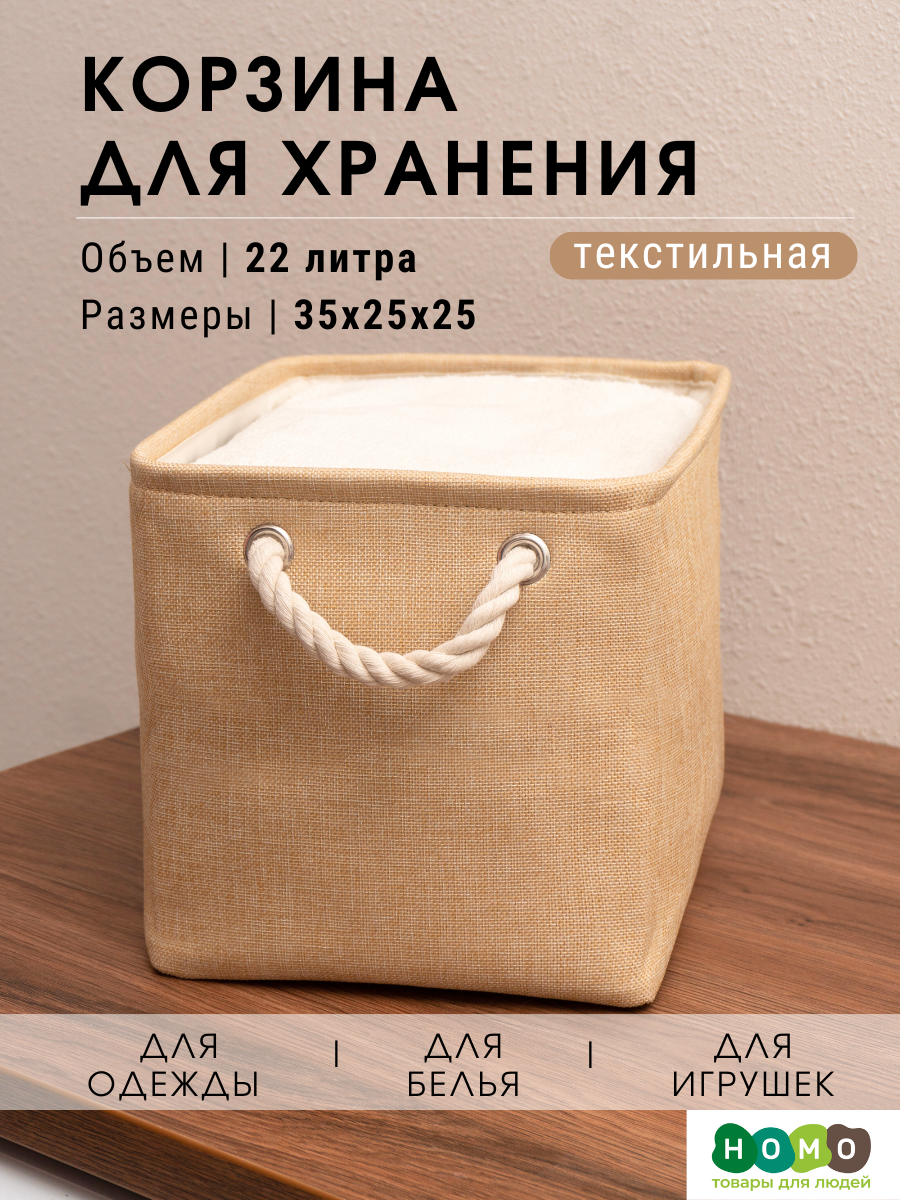 Купить Текстильная корзина для хранения / HOMO / размер: 35*25*25 цвет: бежевый
