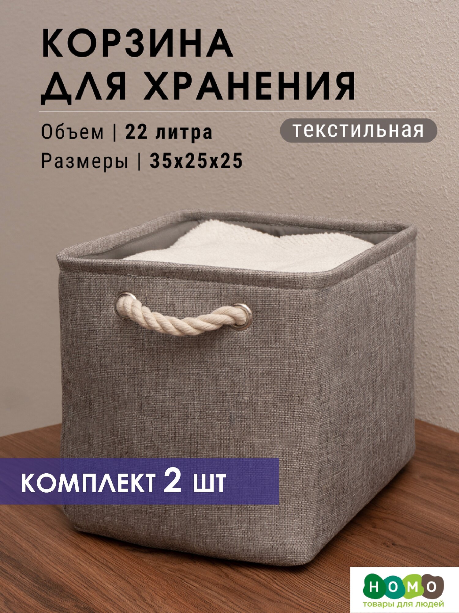 СохранитьТекстильная корзина для хранения / HOMO / размер: 35*25*25 цвет: серый, 2 шт интересное: