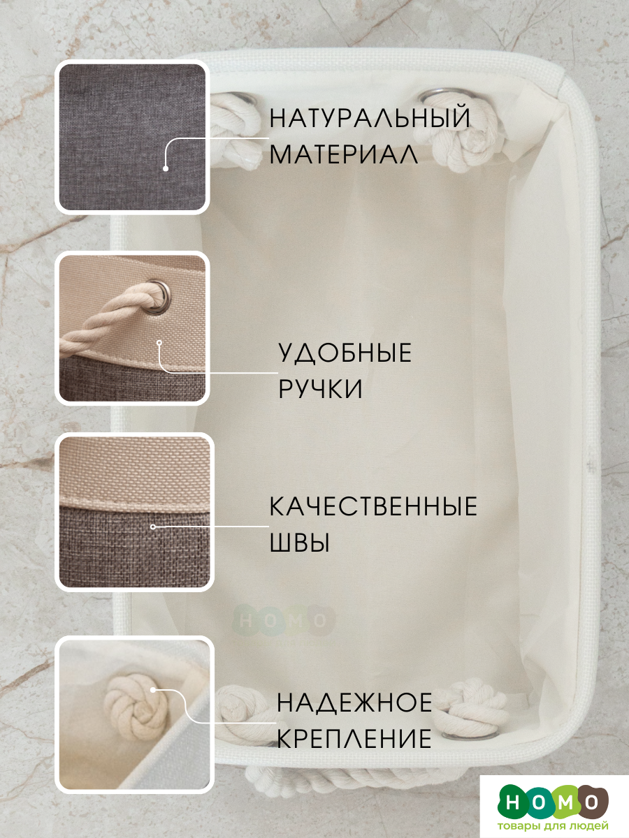 Текстильная корзина для хранения / HOMO / размер: 35*25*25 цвет: белый/бежевый