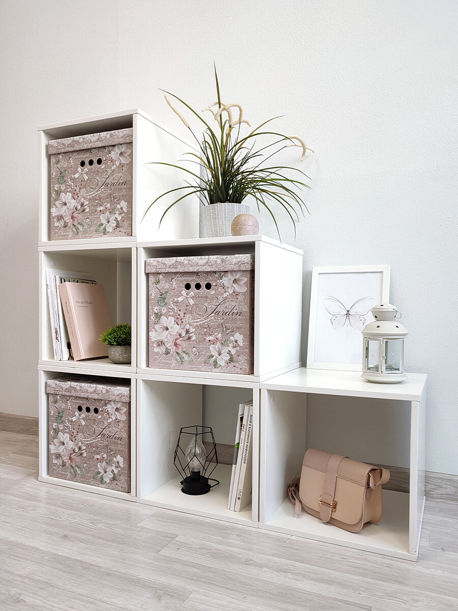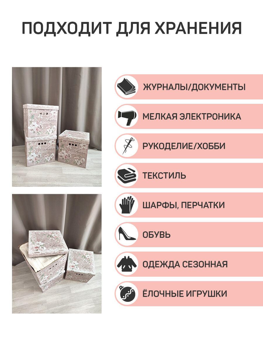 Коробки для хранения вещей, игрушек, обуви, картонные, короб для хранения с крышкой, 31.5*31.5*31.5 см, набор 3 шт, BOTANIC LIGHT