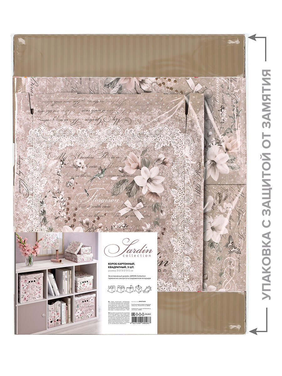 СохранитьКороба картонные, 31.5*31.5*31.5 см, набор 3 шт, JARDIN интересное:
