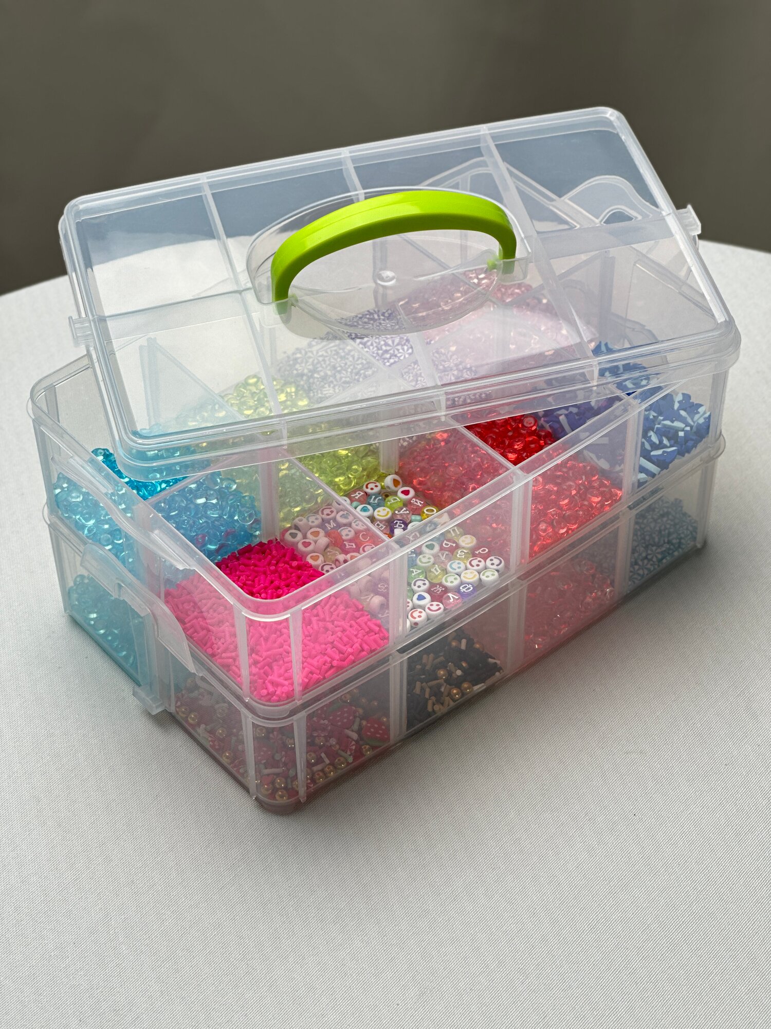 Органайзер для мелочи, канцелярии, шитья 3 съемные секции, ручка, 18 ячеек, 16,3x15,5x14 см, прозрачный