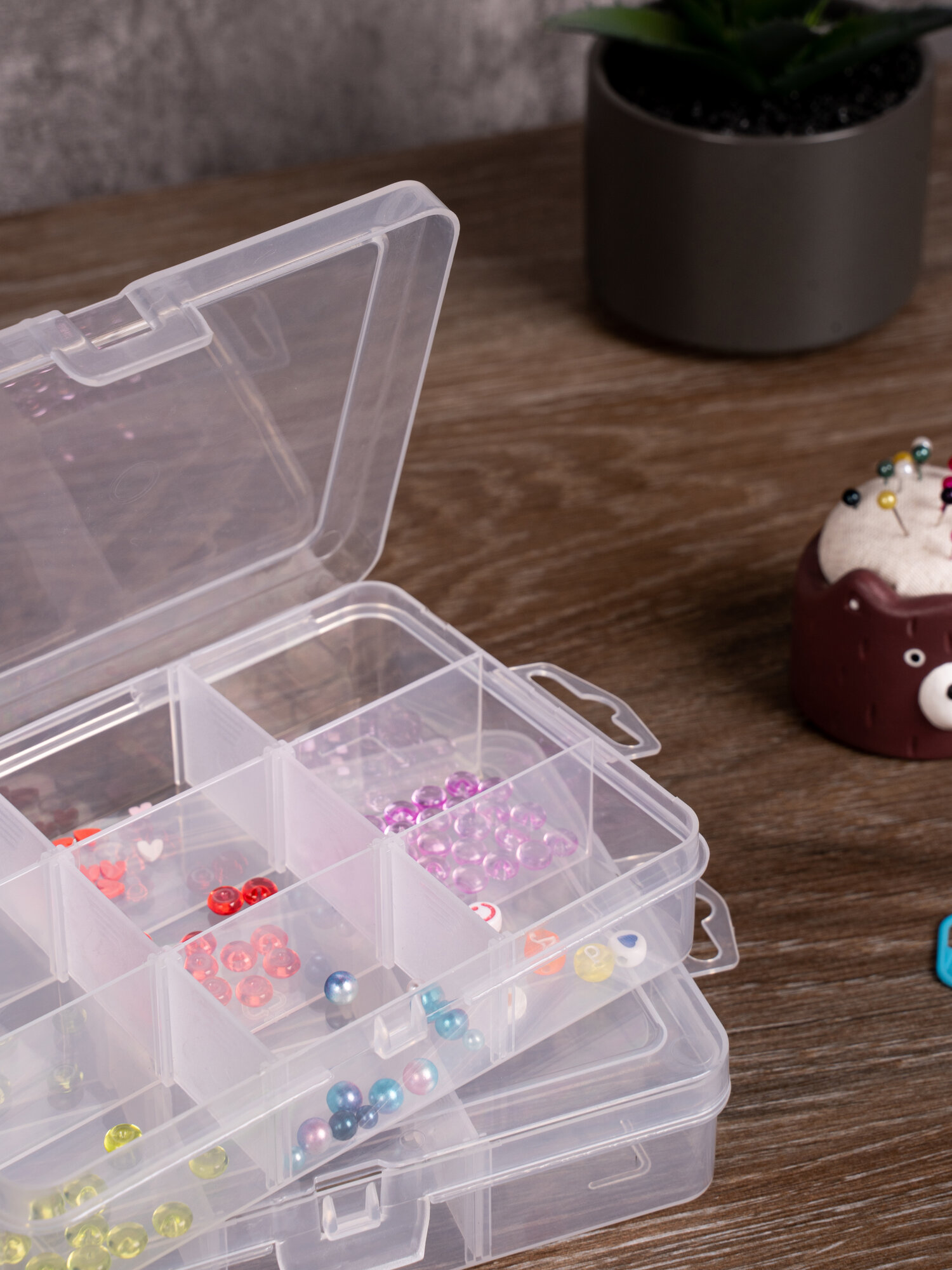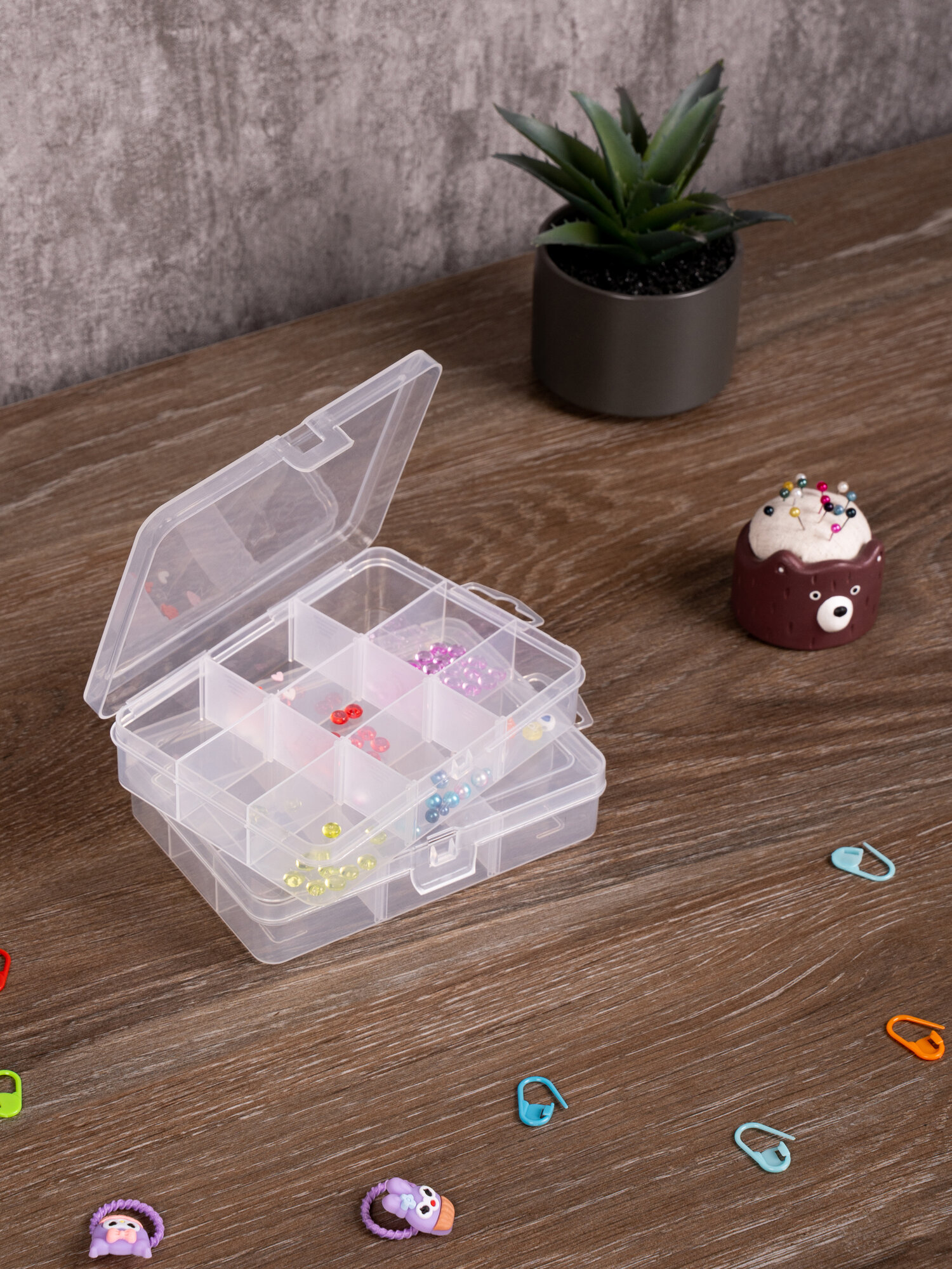 Органайзер для мелочи, канцелярии, шитья 3 съемные секции, ручка, 18 ячеек, 16,3x15,5x14 см, прозрачный