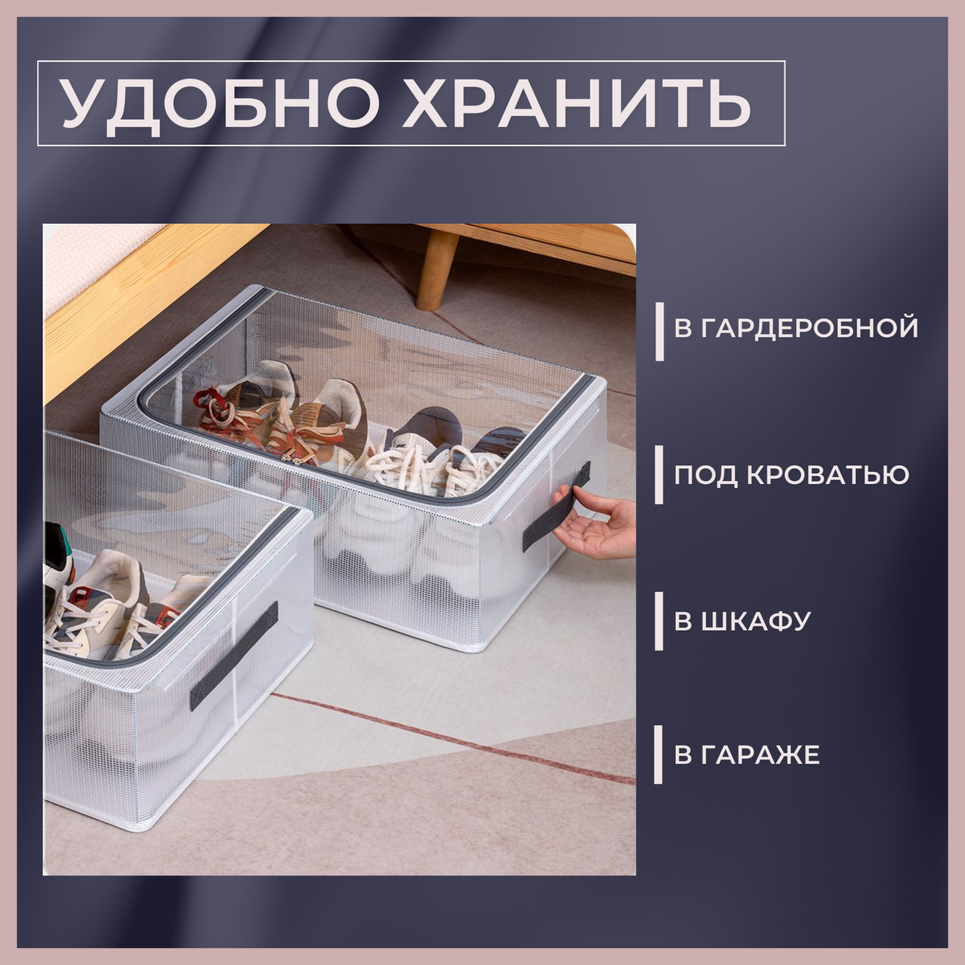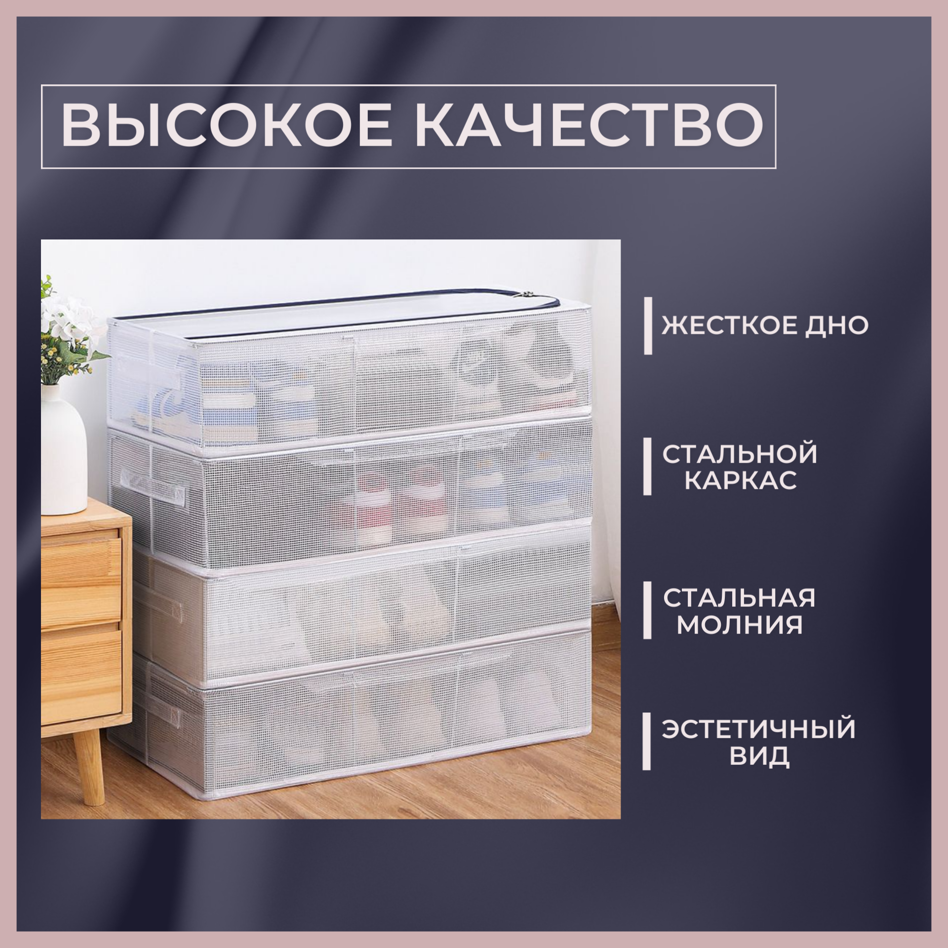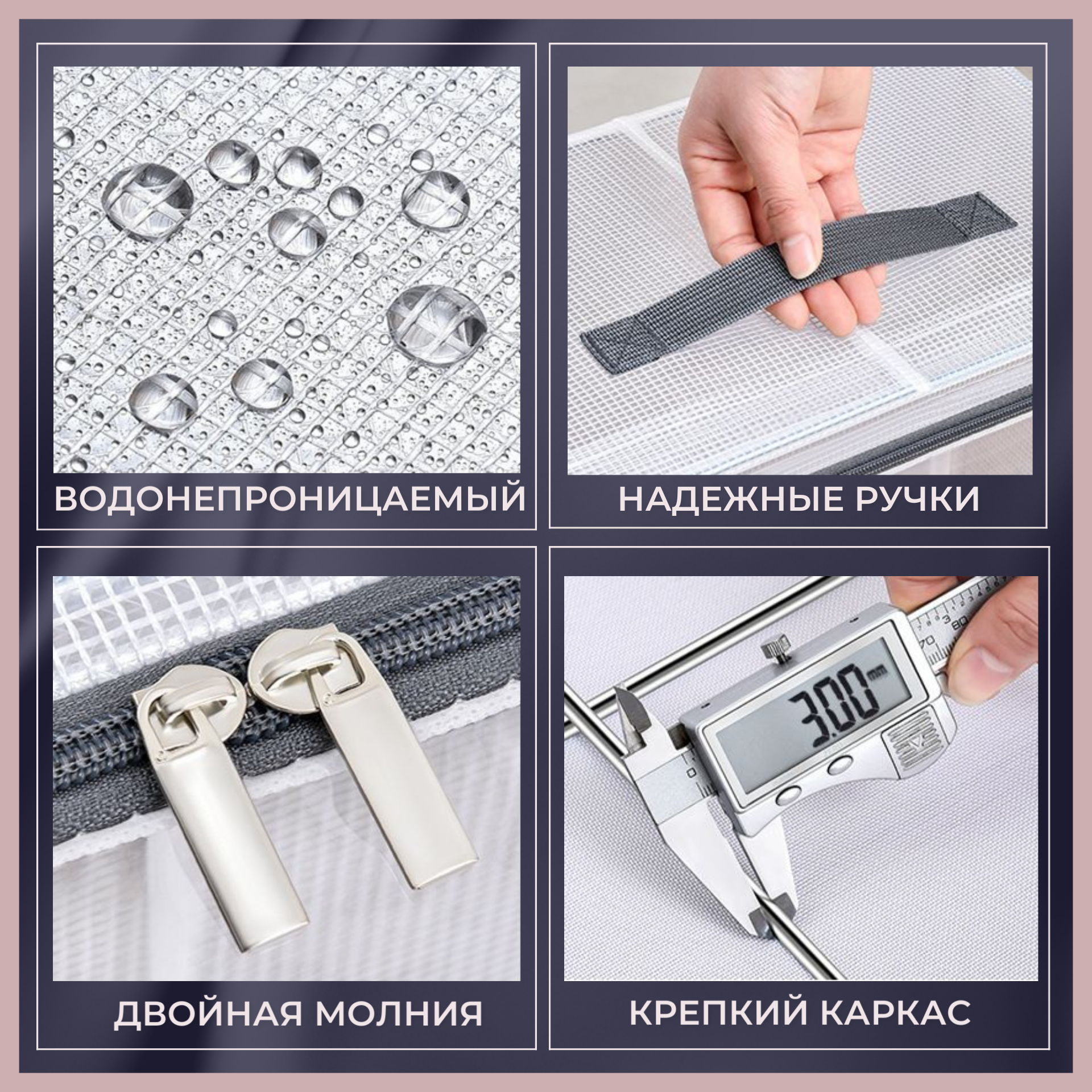 Органайзер, коробка, короб, кофр для хранения обуви одежды вещей, 50*40*15, стальной каркас прозрачный на молнии