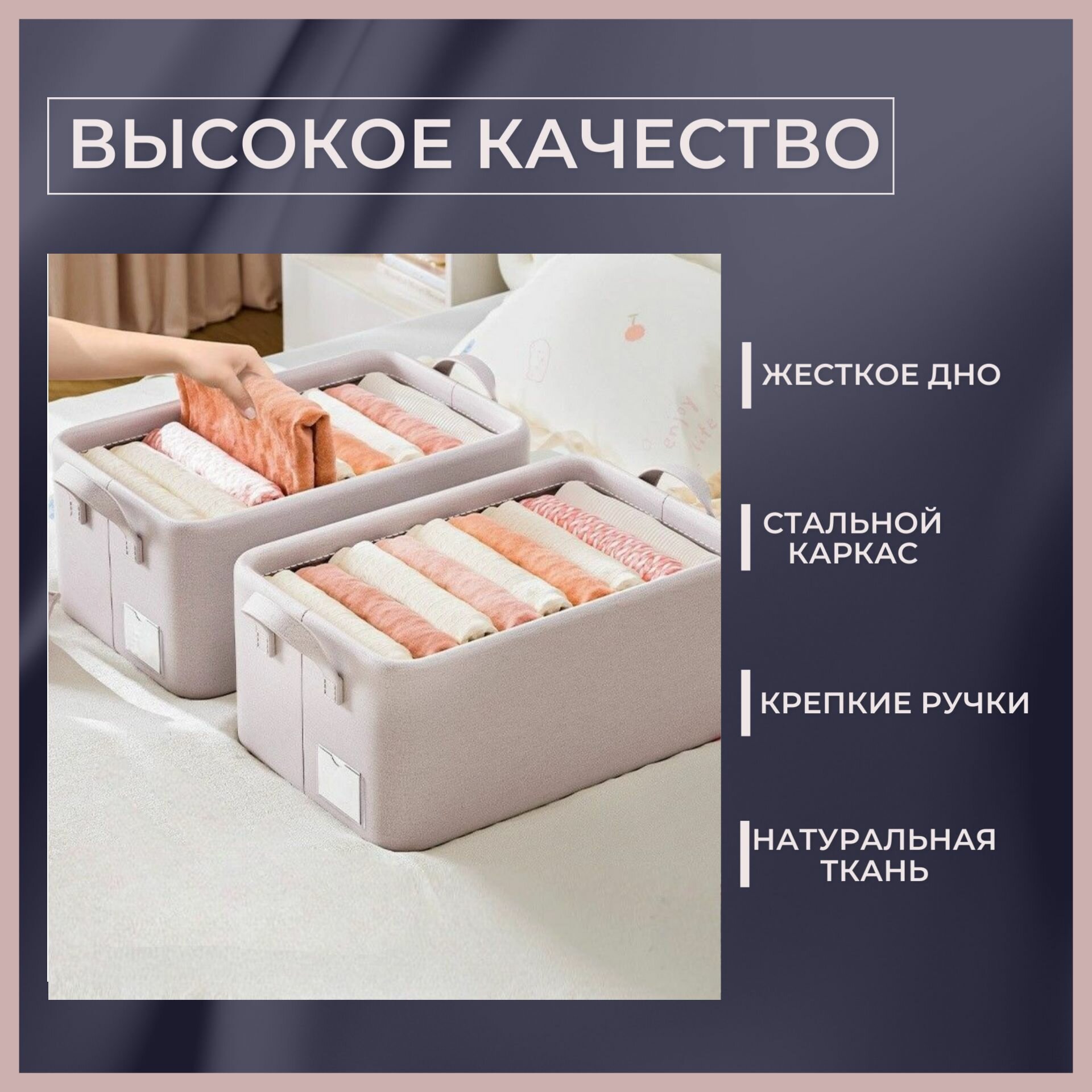 Органайзер, короб, кофр для хранения, тканевый льняной, 47*28*20, стальной каркас
