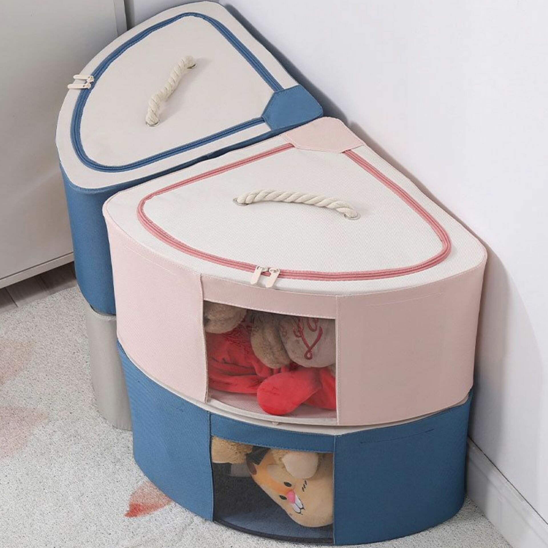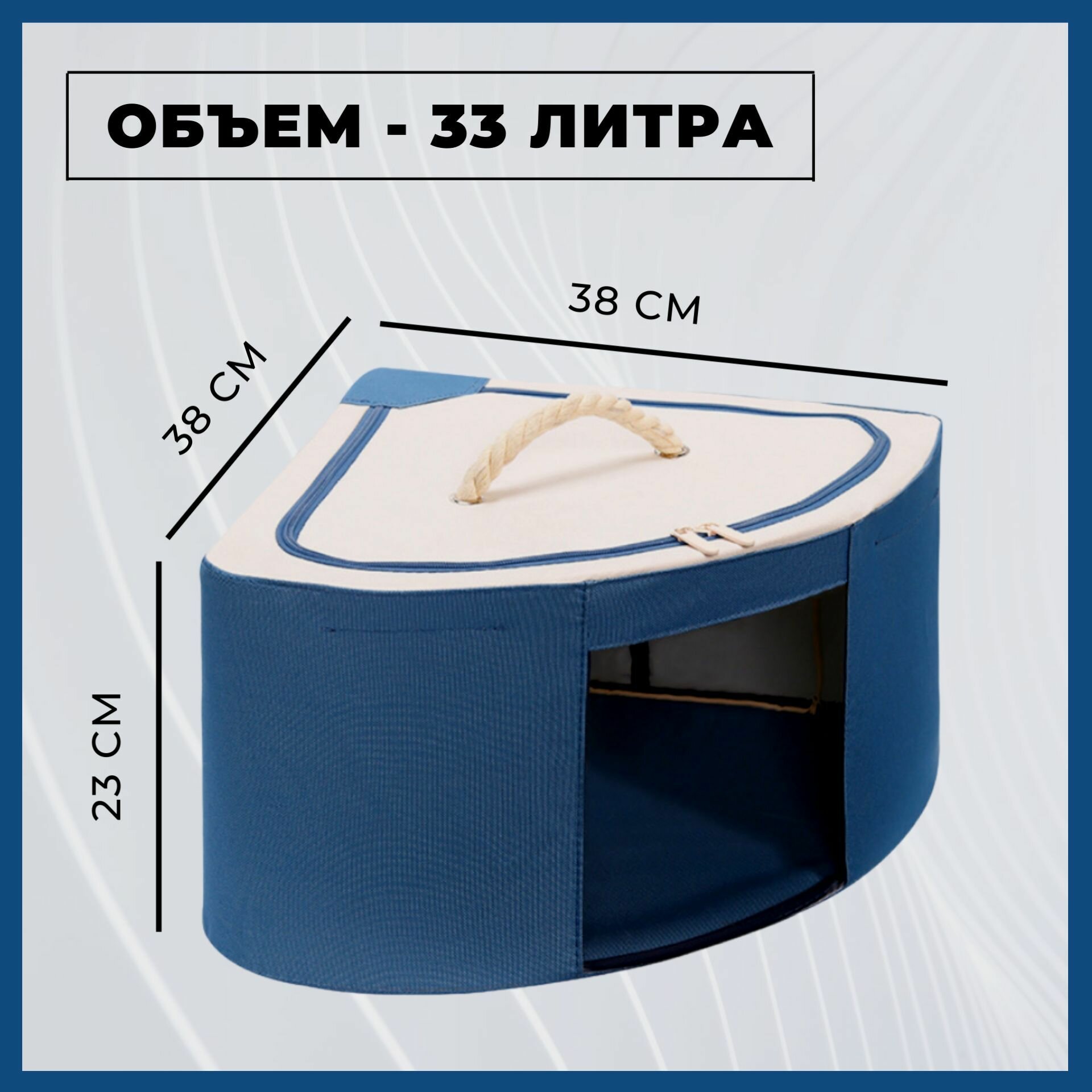 Купить Органайзер, короб, кофр для хранения одежды игрушек, цвет темно-синий, 38*38*23, стальной каркас на молнии