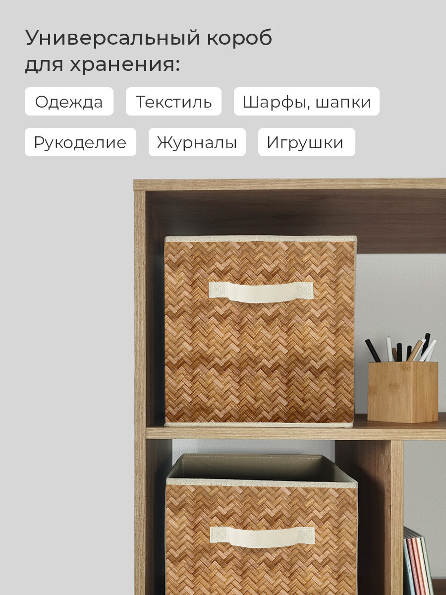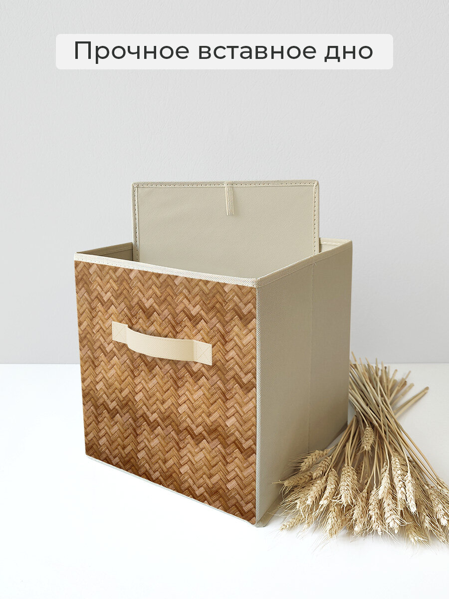 СохранитьКоробки для хранения вещей, короб для хранения стеллажный, корзина, ящик, набор 3 шт, 27*27*28 см, темно-бежевый/коричневый, BASIC интересное: