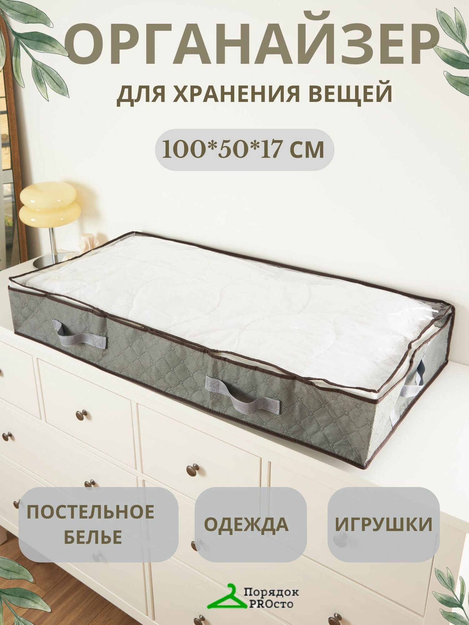 Органайзер, для хранения вещей, для подушек, одеял, белья, одежды, серый