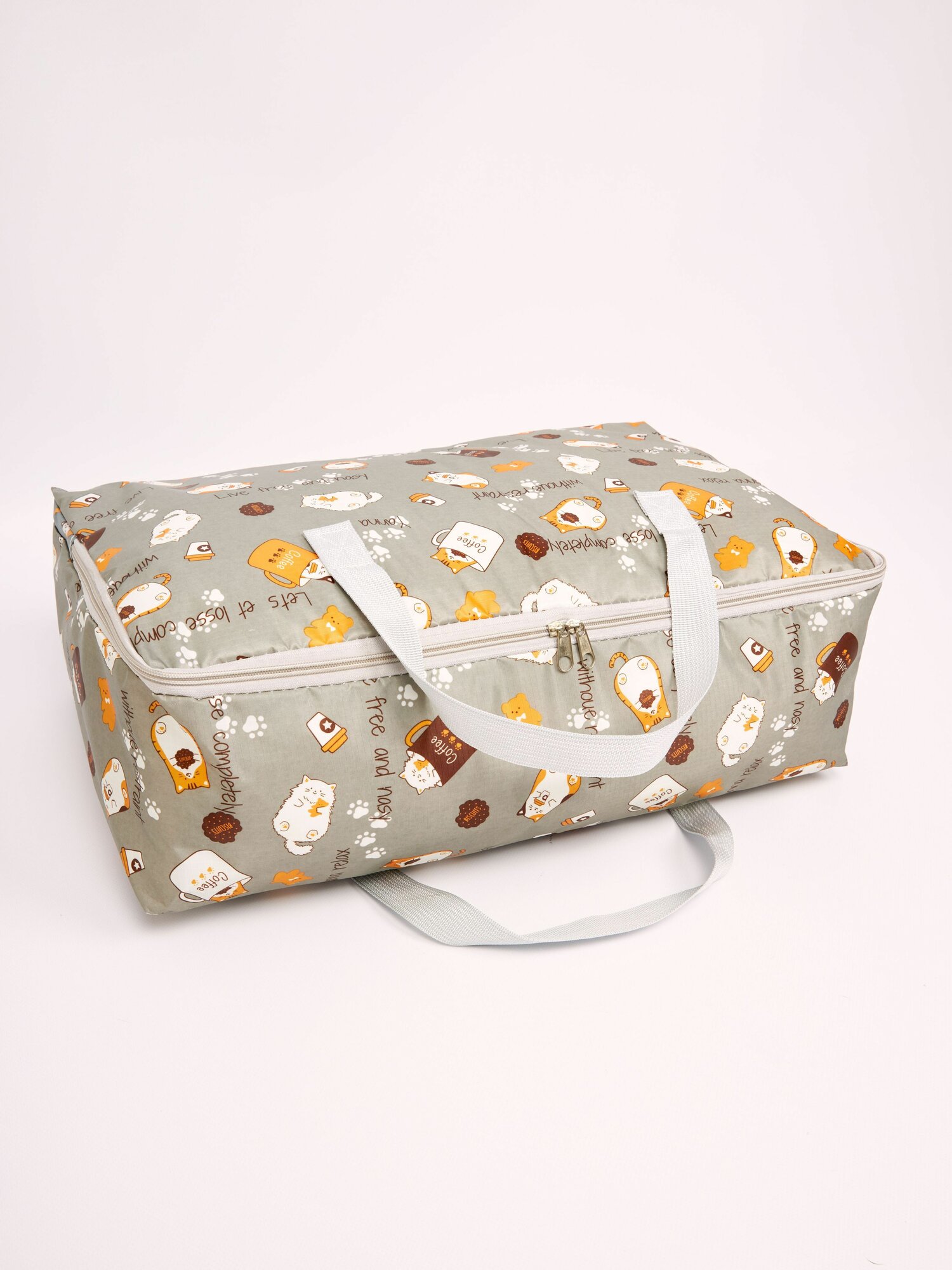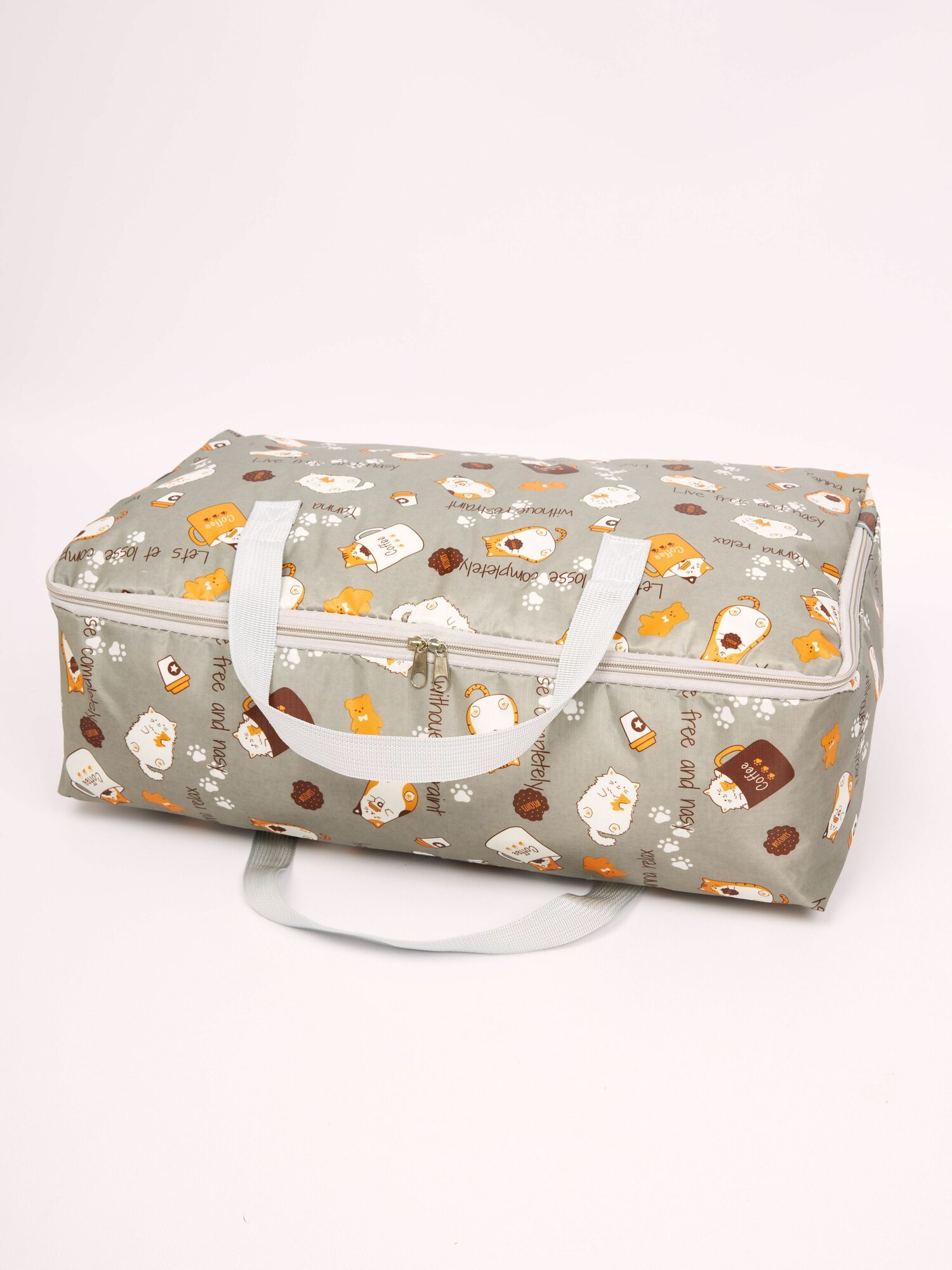 Купить Органайзер, для белья и других вещей, серый, с принтом котиков, на молнии