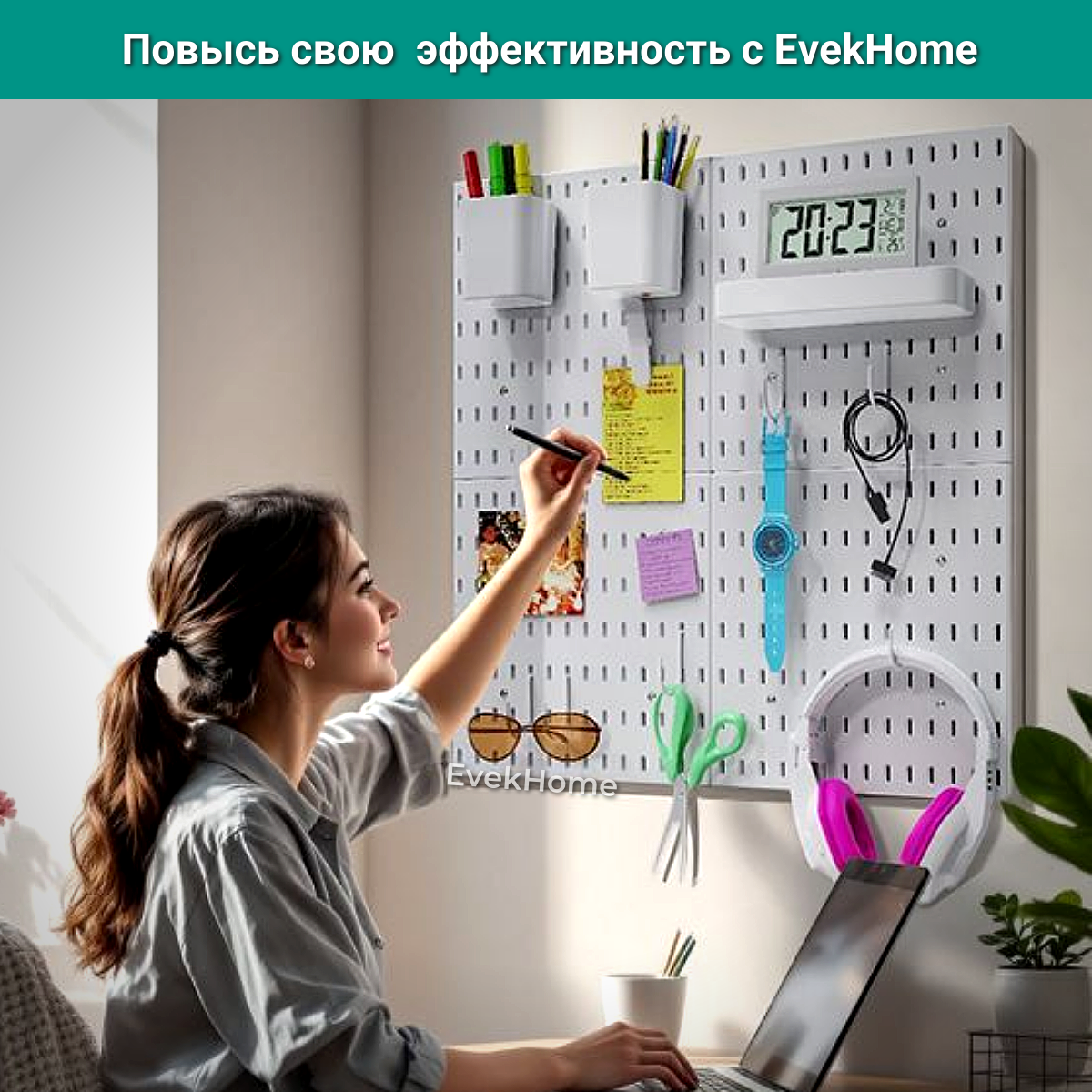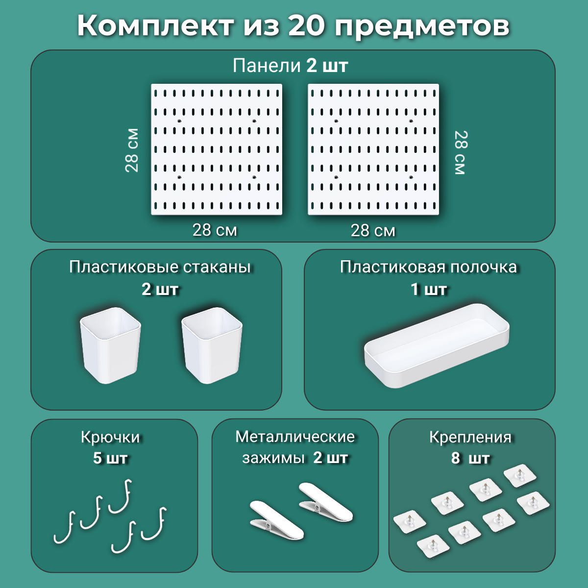 Купить Настенный органайзер аналог Икеа. 2 панели + 10 аксессуаров. Хранение канцелярии за письменным столом, на стену