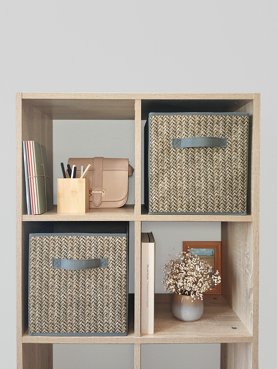 Коробки для хранения вещей, короб для хранения стеллажный, корзина, ящик, набор 2 шт, 27*27*28 см, темно-бежевый, BASIC