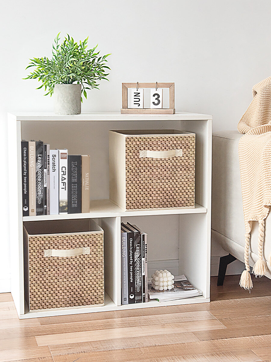 Купить Коробки для хранения вещей, короб для хранения стеллажный, корзина, ящик, набор 2 шт, 27*27*28 см, светло-бежевый, BASIC