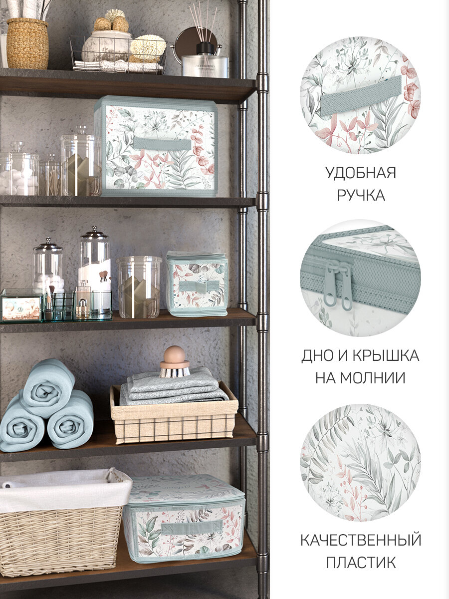 Коробка для хранения вещей с крышкой, короб для хранения стеллажный, корзина, ящик, 28*30*16 см, VALIANT BOTANIC