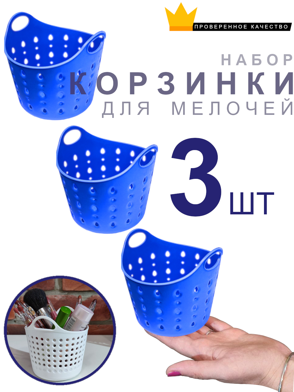 Набор корзин для хранения мелочей с ручками 12*12см пластиковая синяя интересное: