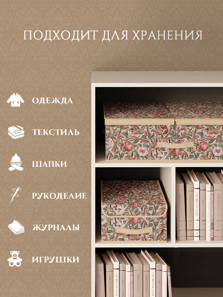СохранитьКоробка для хранения вещей, органайзер для хранения, ящик, корзина, 58*40*18 см, OPUS ROMANO FLORA интересное:
