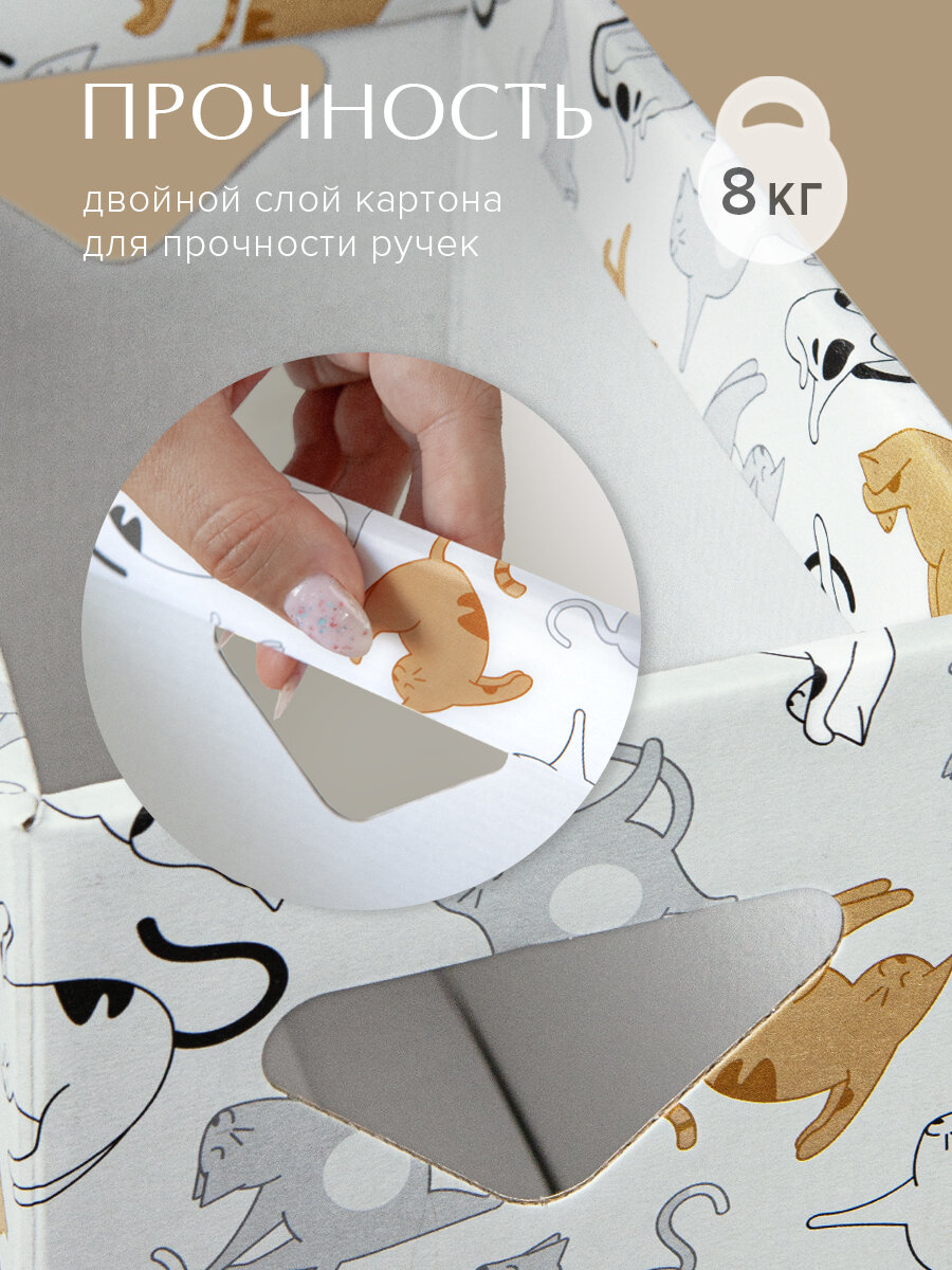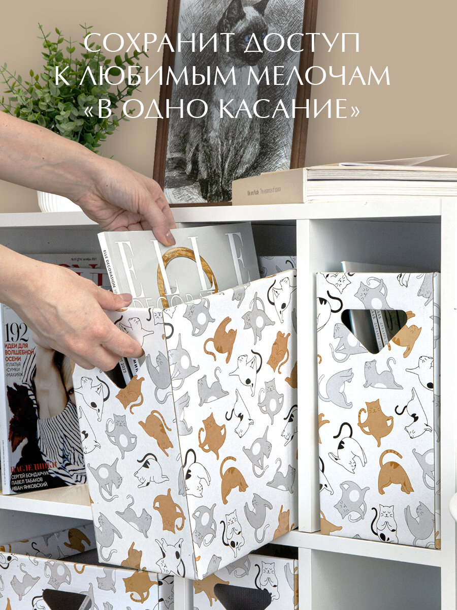 Коробки для хранения вещей, коробки для стеллажей, органайзер для хранения, набор 4 шт, 14*28*14 см, КОТИКИ