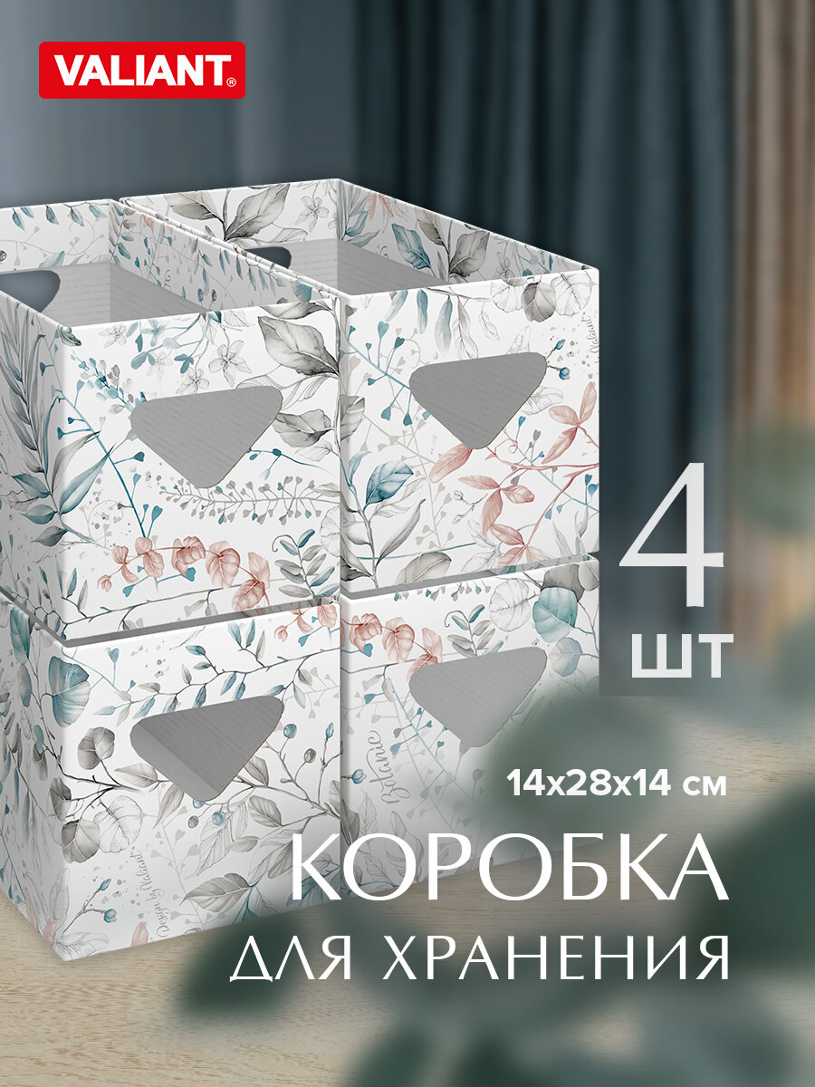 Коробка для хранения картонная, 14*28*27 см, набор 4 шт, BOTANIC