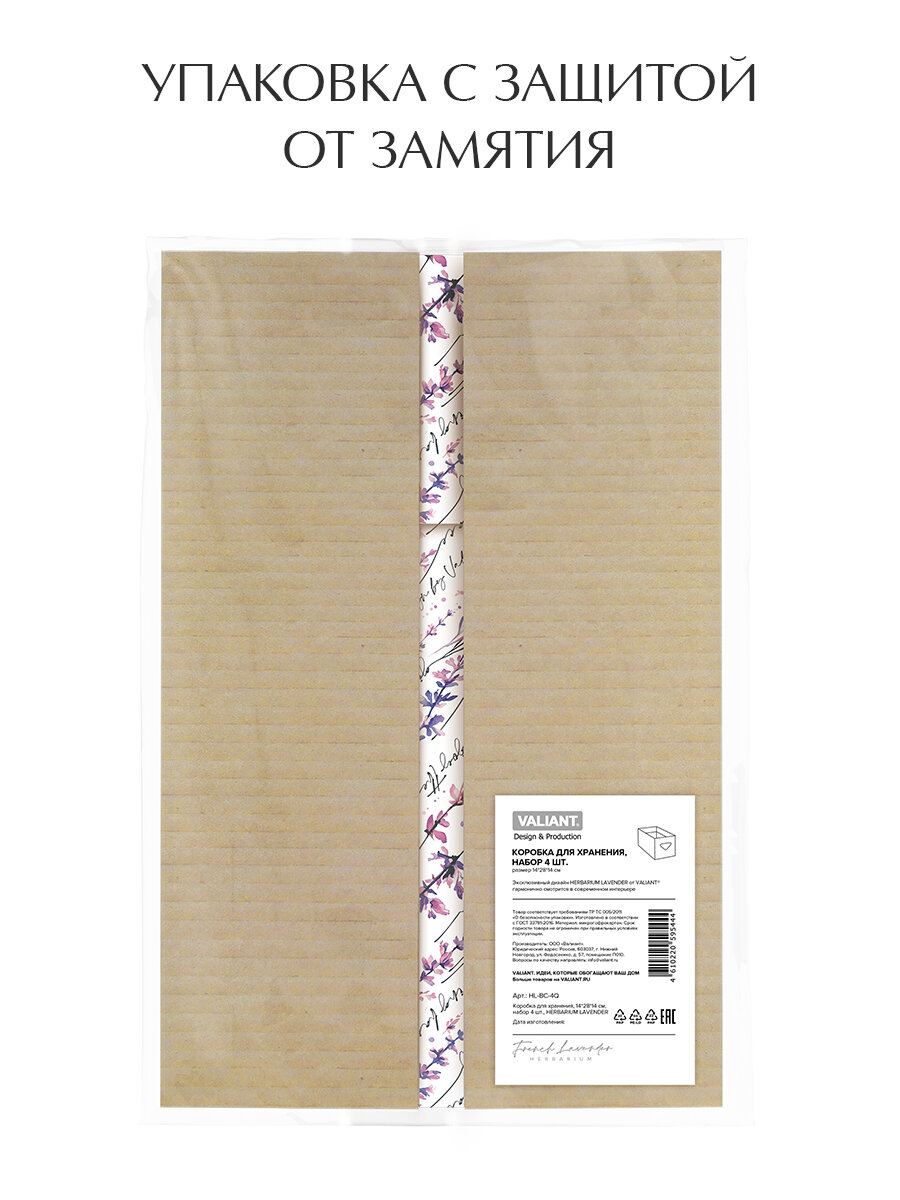 Купить Коробка для хранения, 14*28*14 см, набор 4 шт, HERBARIUM LAVENDER