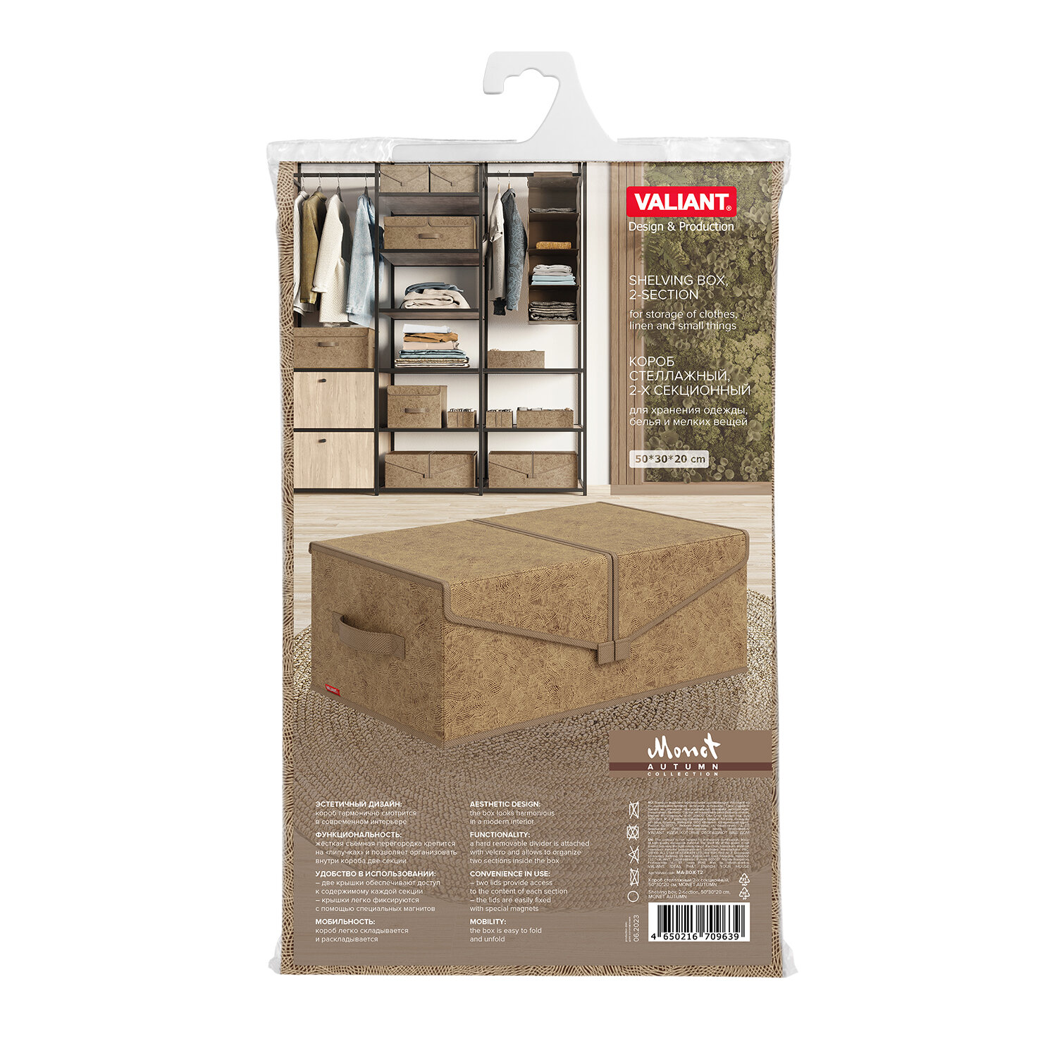 СохранитьКоробка для хранения вещей с крышкой, короб для хранения стеллажный, ящик с двумя отделениями, 50*30*20 см, MONET AUTUMN интересное: