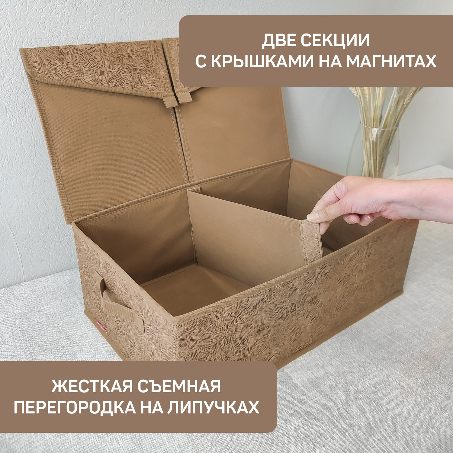 Коробка для хранения вещей с крышкой, короб стеллажный, ящик с двумя отделениями, 50*30*20 см, OPUS ROMANO VENUS