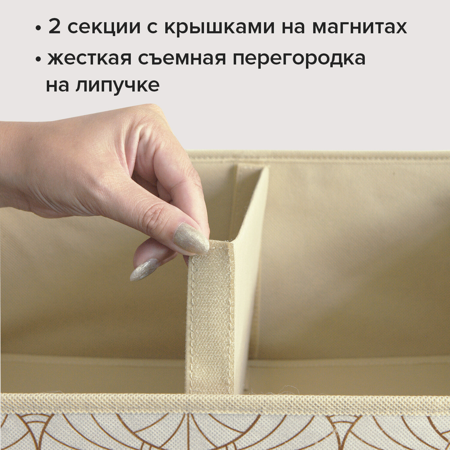 Коробка для хранения вещей с крышкой, короб стеллажный, ящик с двумя отделениями, 50*30*20 см, OPUS ROMANO VENUS