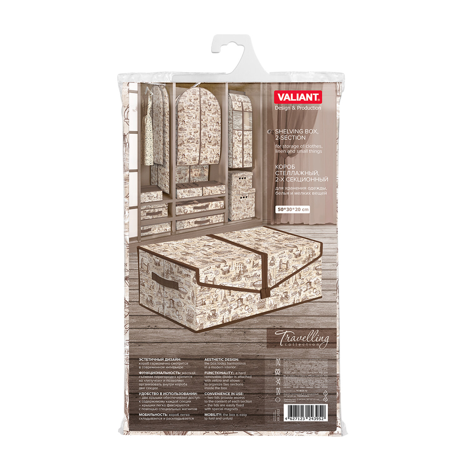 СохранитьКороб стеллажный 2-х секционный, органайзер для хранения, ящик, 50*30*20 см, TRAVELLING интересное: