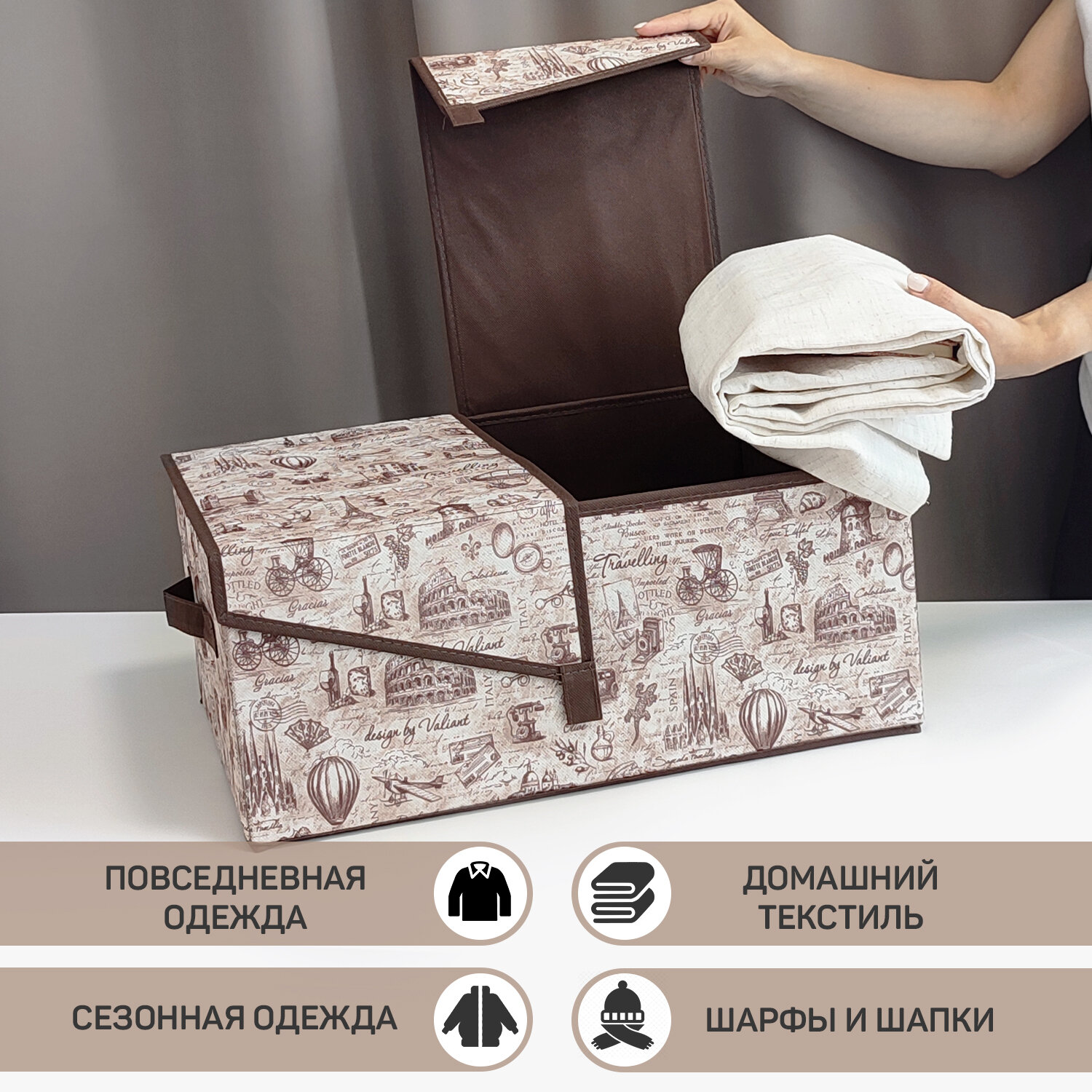 Коробка для хранения вещей с крышкой, короб стеллажный, ящик с двумя отделениями, 50*30*20 см, OPUS ROMANO VENUS