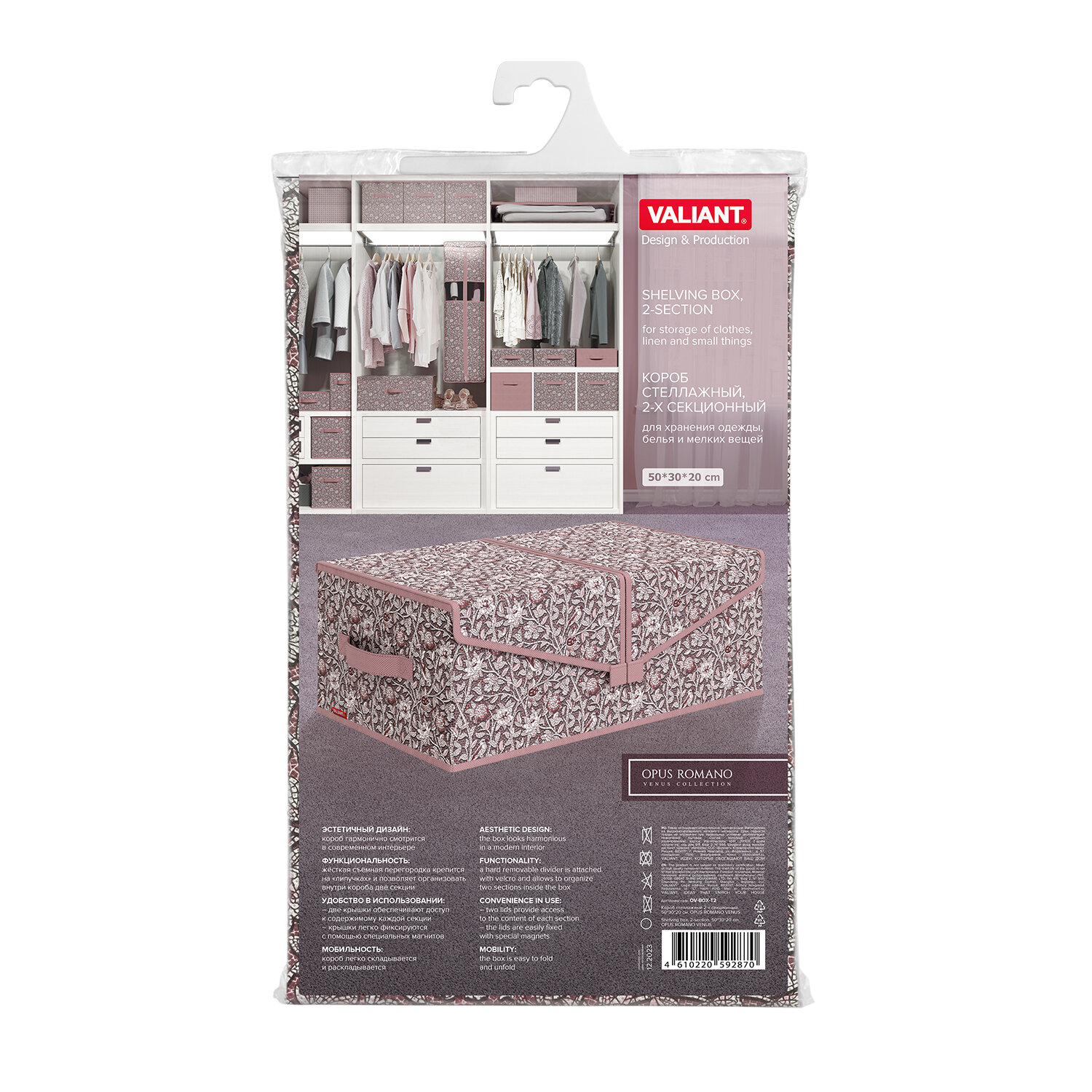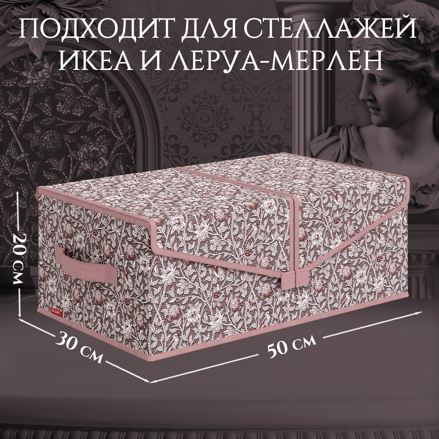 СохранитьКоробка для хранения вещей с крышкой, короб стеллажный, ящик с двумя отделениями, 50*30*20 см, OPUS ROMANO VENUS интересное: