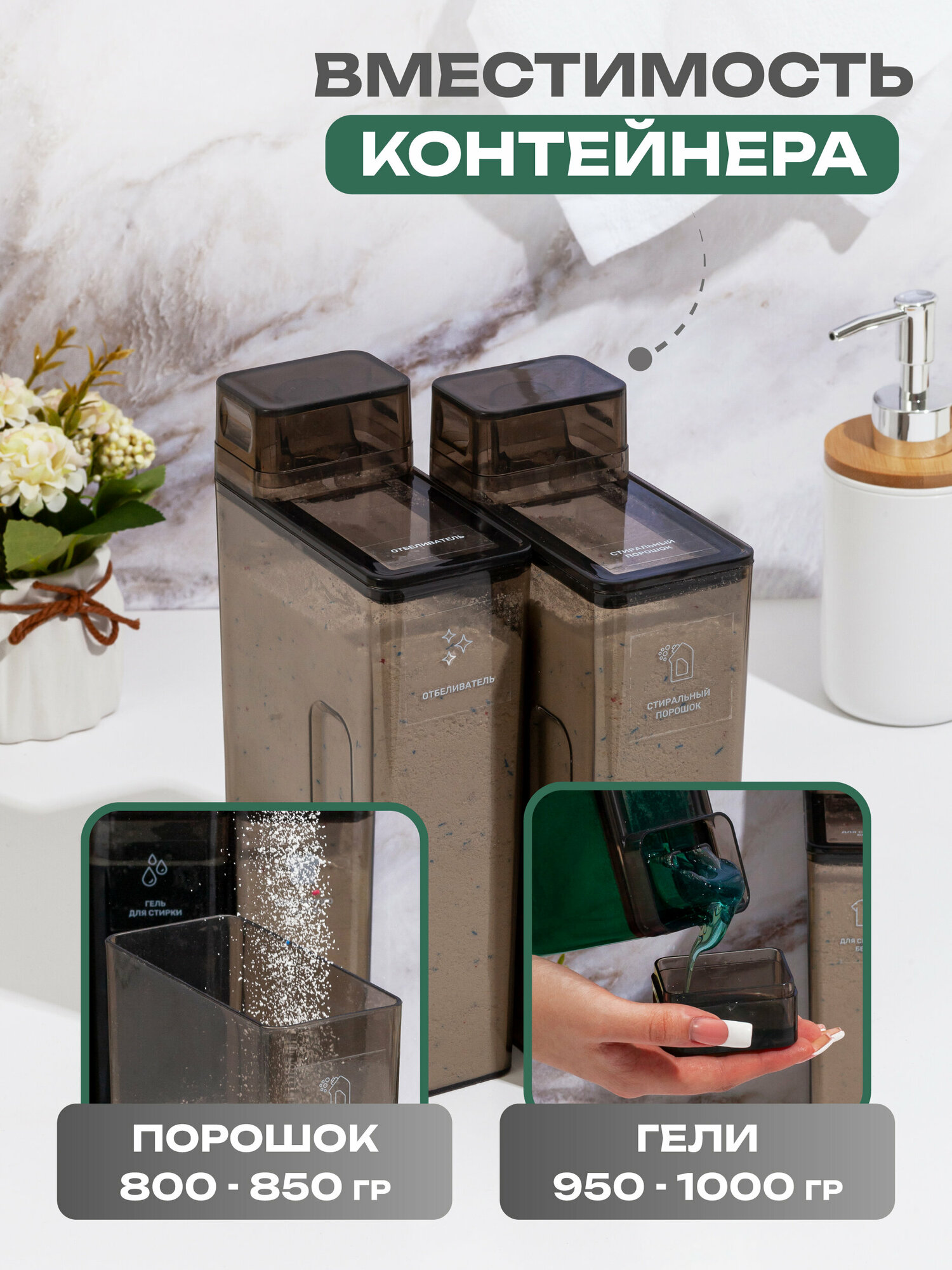 Контейнер для порошка стирального White estate HOME, 1,2 литр, прозрачно - черный, набор из 2 штук