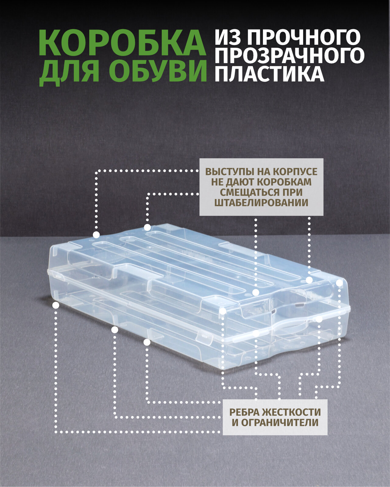Коробка для хранения обуви большая с защелками, контейнер с ручкой, прозрачный, 61х34х13 см интересное: